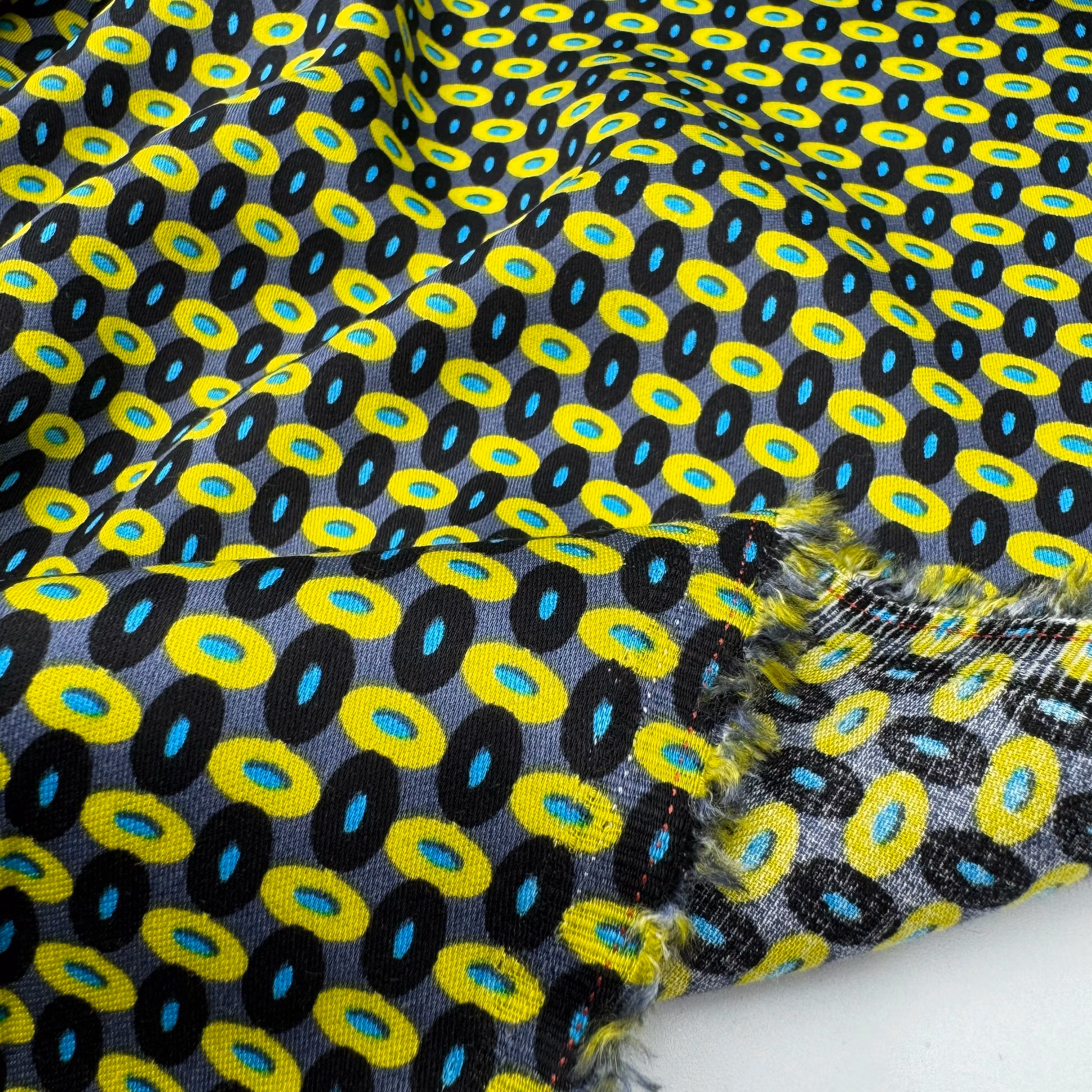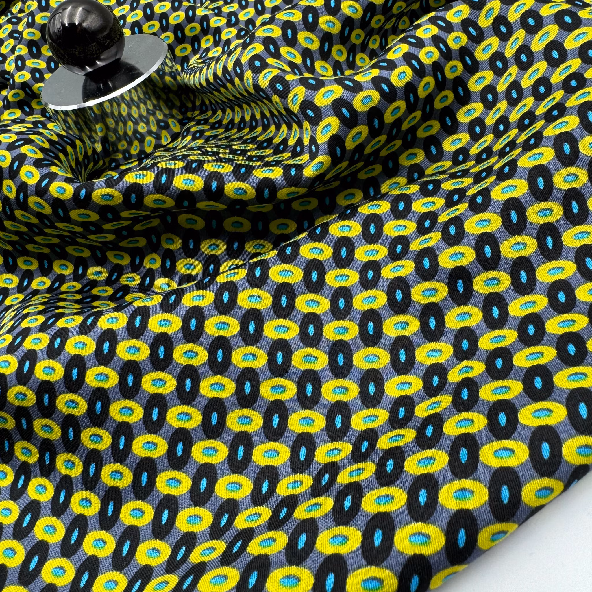 0,7m Viskossatin grå/svart/gul småmönstrad