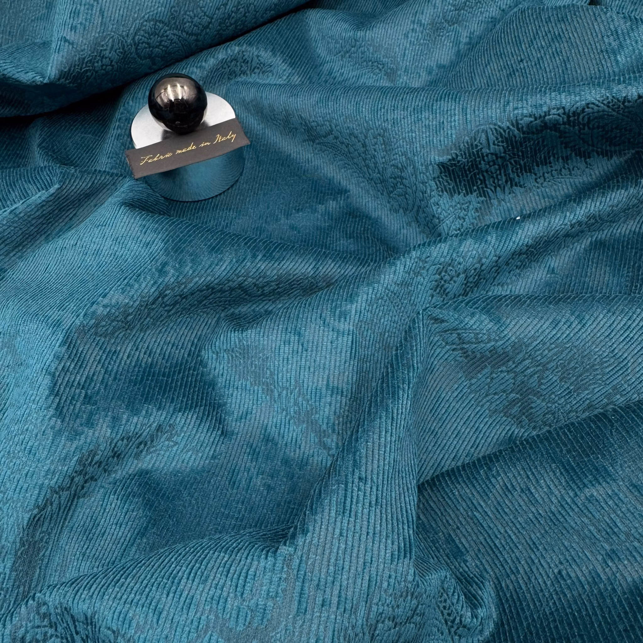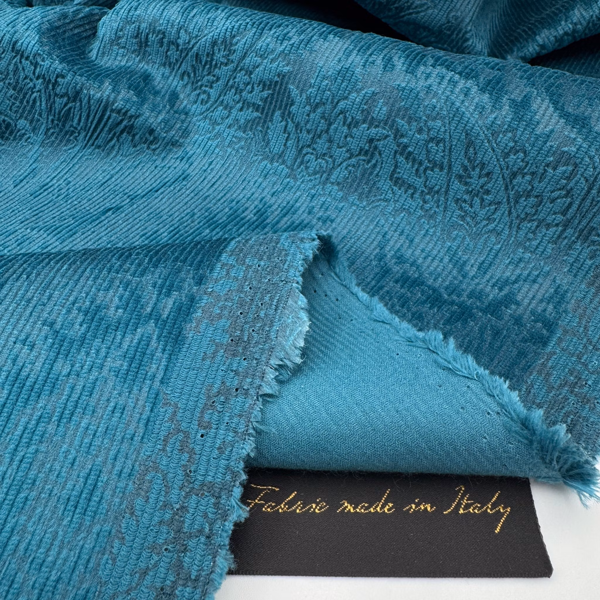 Material: Bomull/elastan 98/2, smalspårig manchester med inpräntat mönster i ytan.