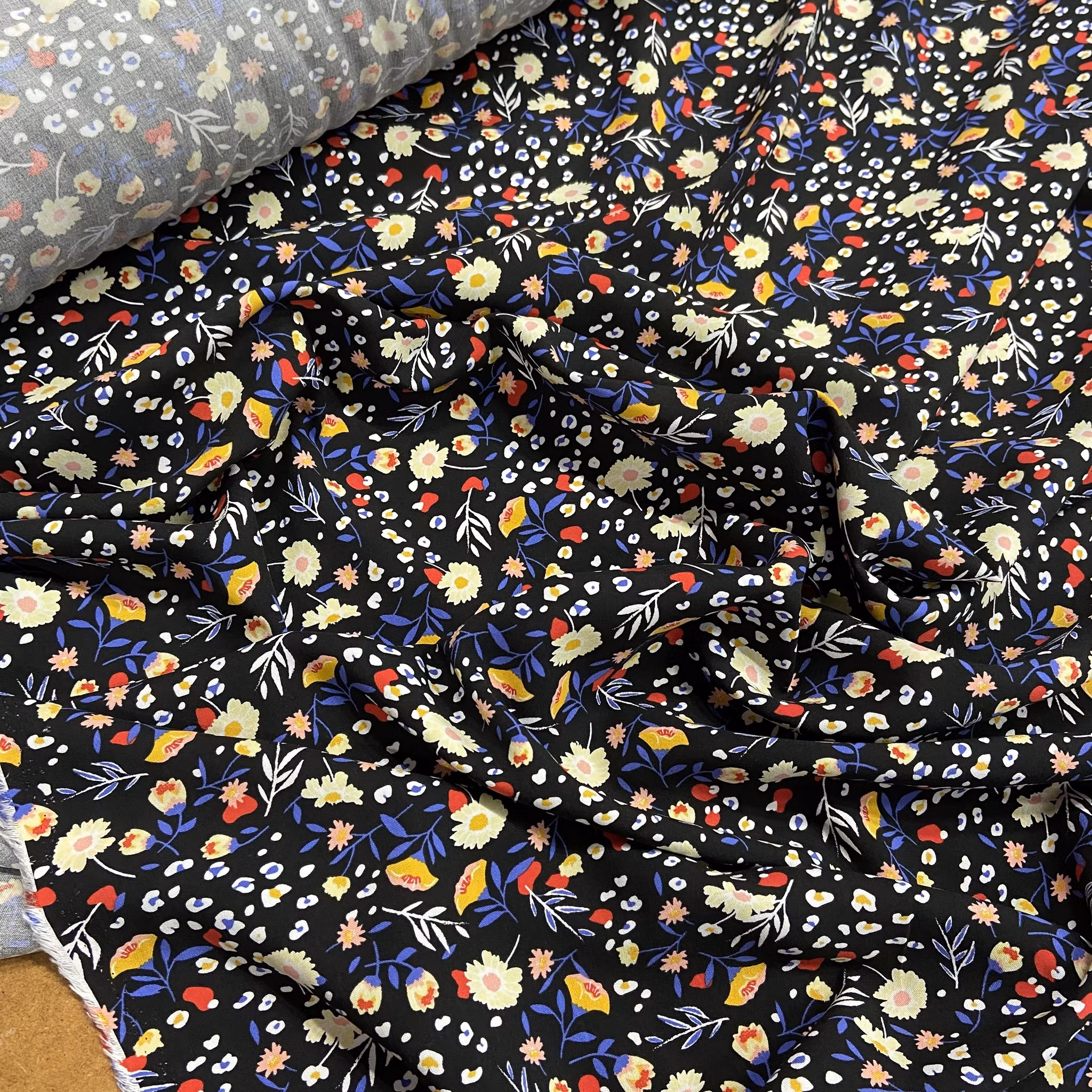 1,3m Viskos - svart botten blommig Marimekkovibb