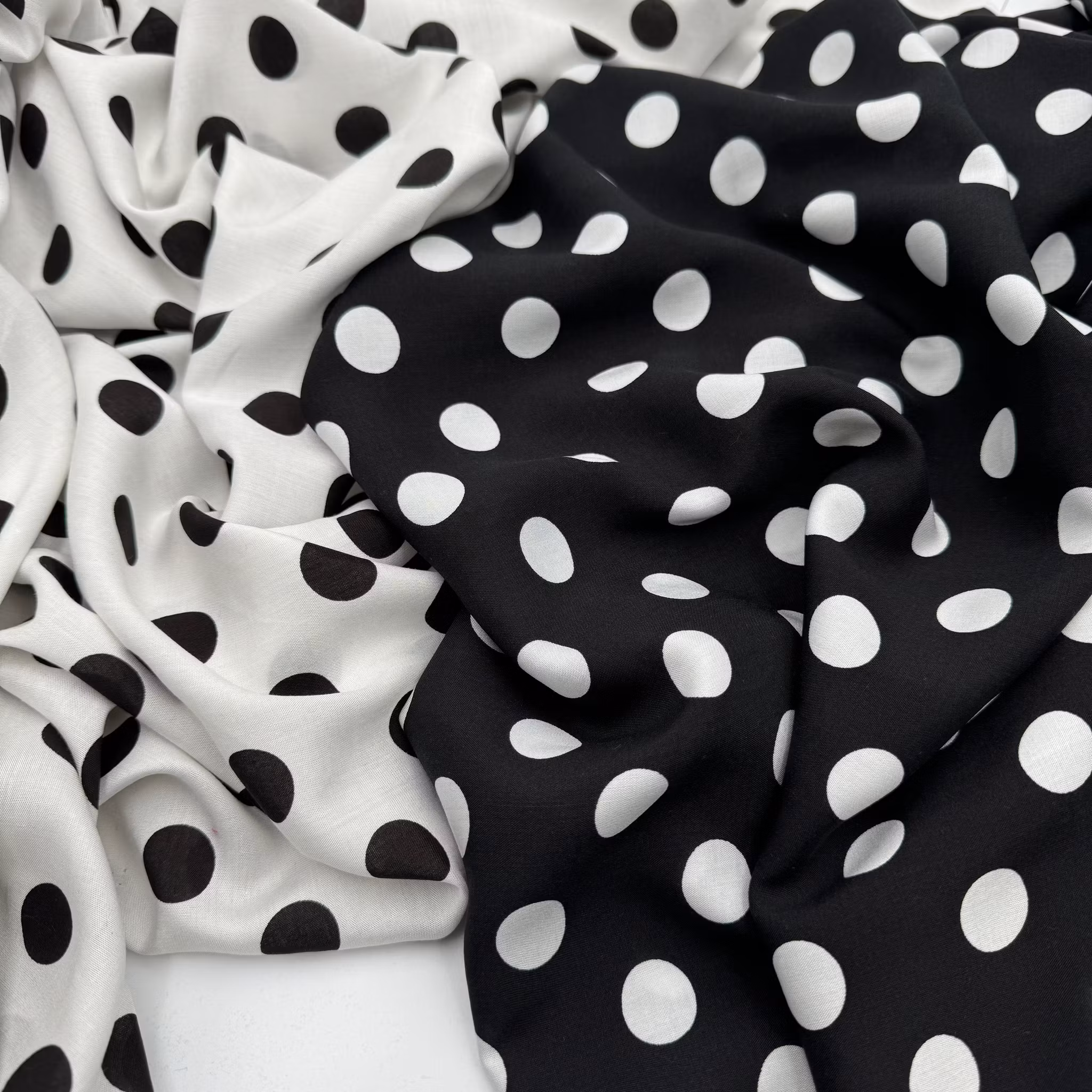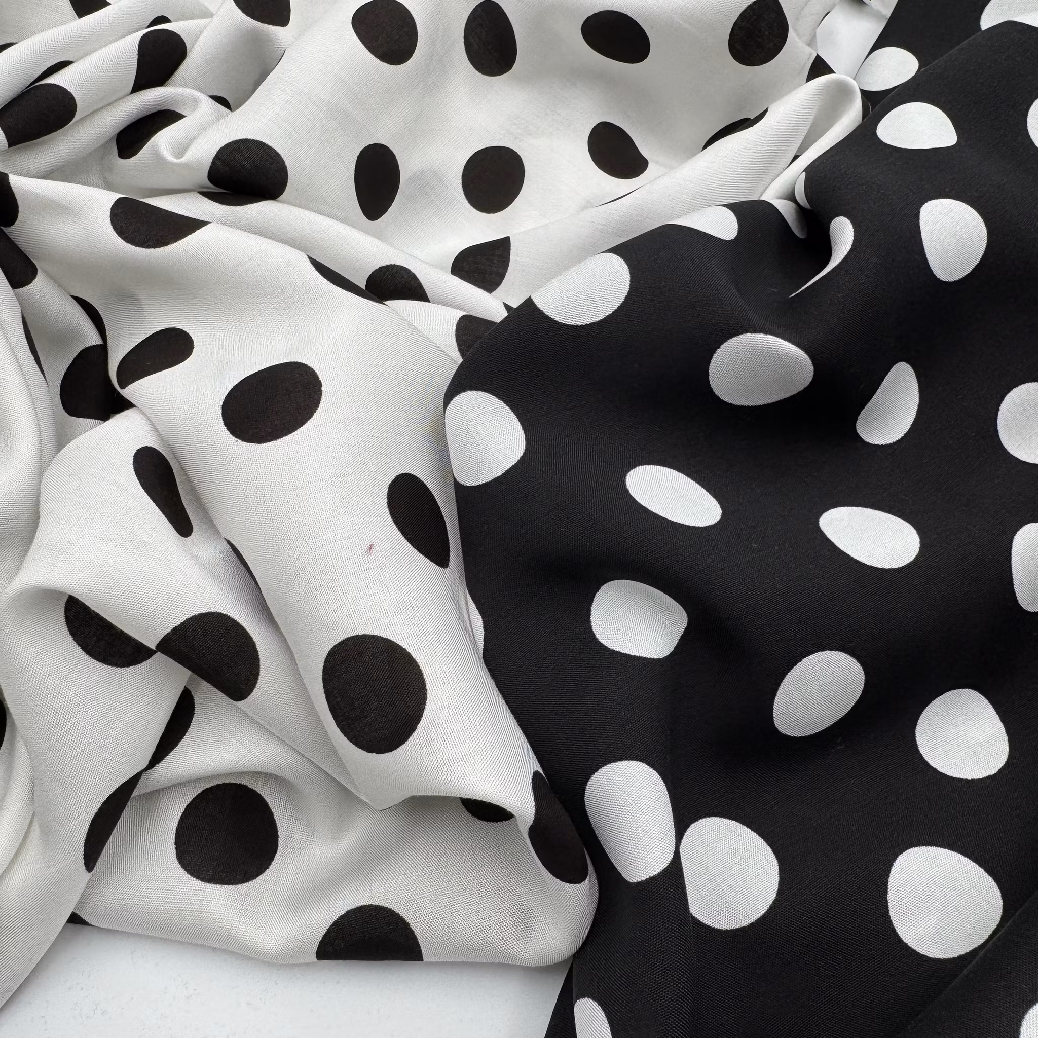 Färg: Svart botten med vita regelbundna prickar, ca 2 cm i diameter