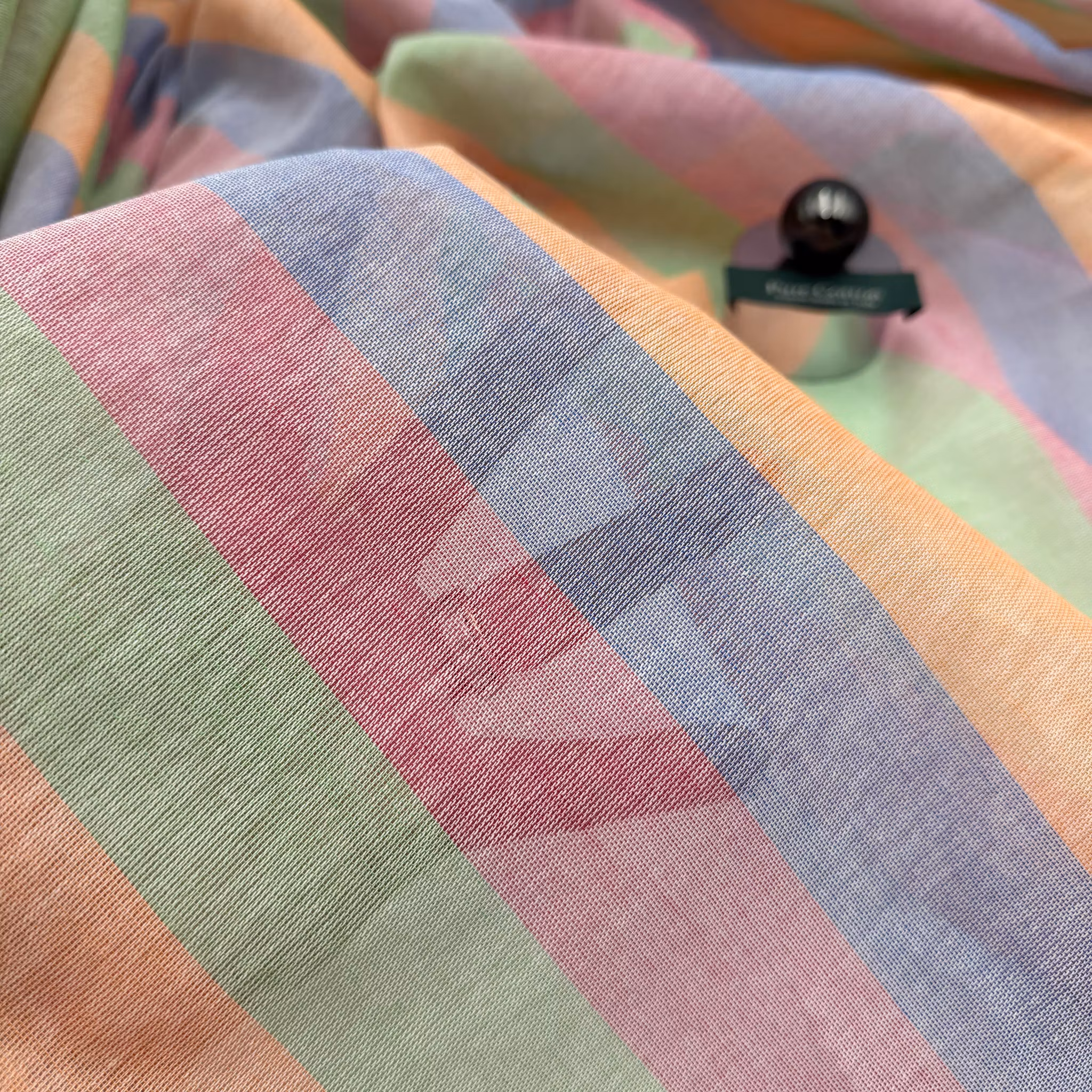 Färg: vävda ränder på bredden, blått grönt, ljusorange och cerise.