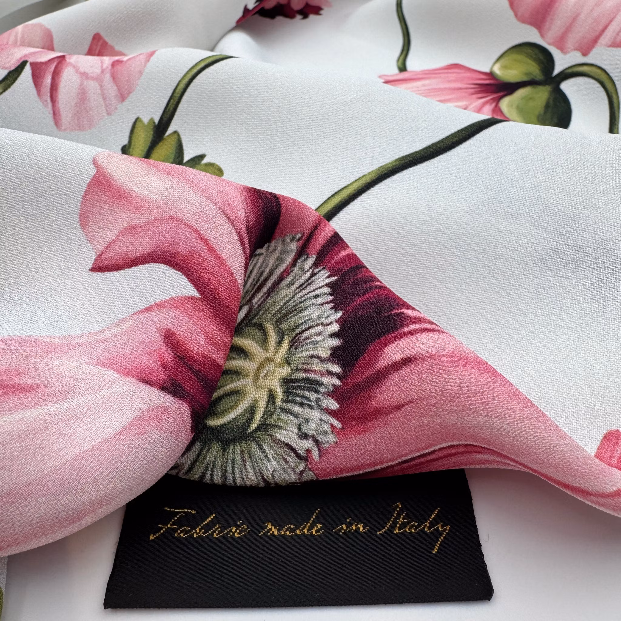 Färg: Vit (kall gråvit) botten, rosa blommor.