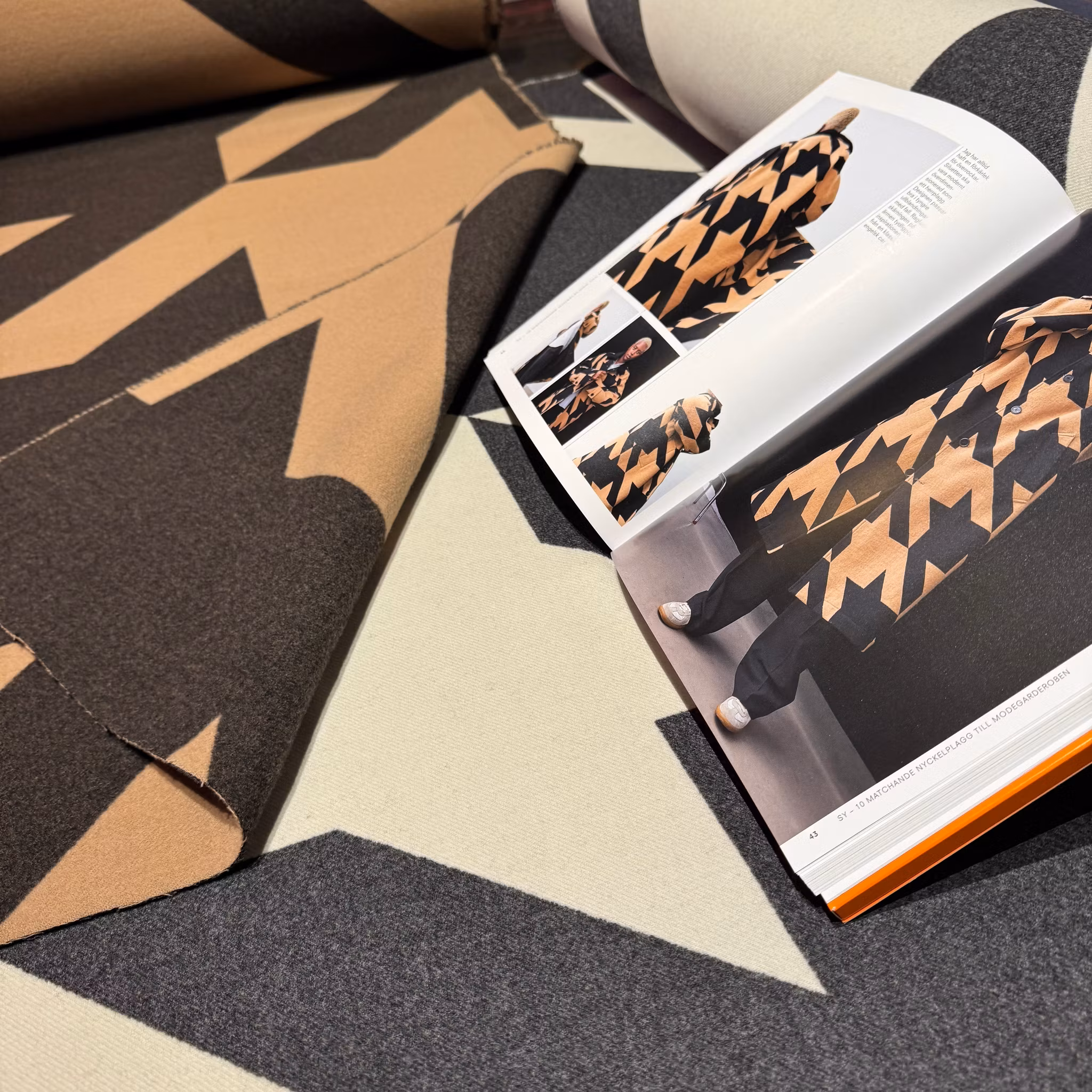 Material: 100% ull, dubbelvävd, följsam, mellankraftig kvalitet, lätt att sy i, känns hållbar.
