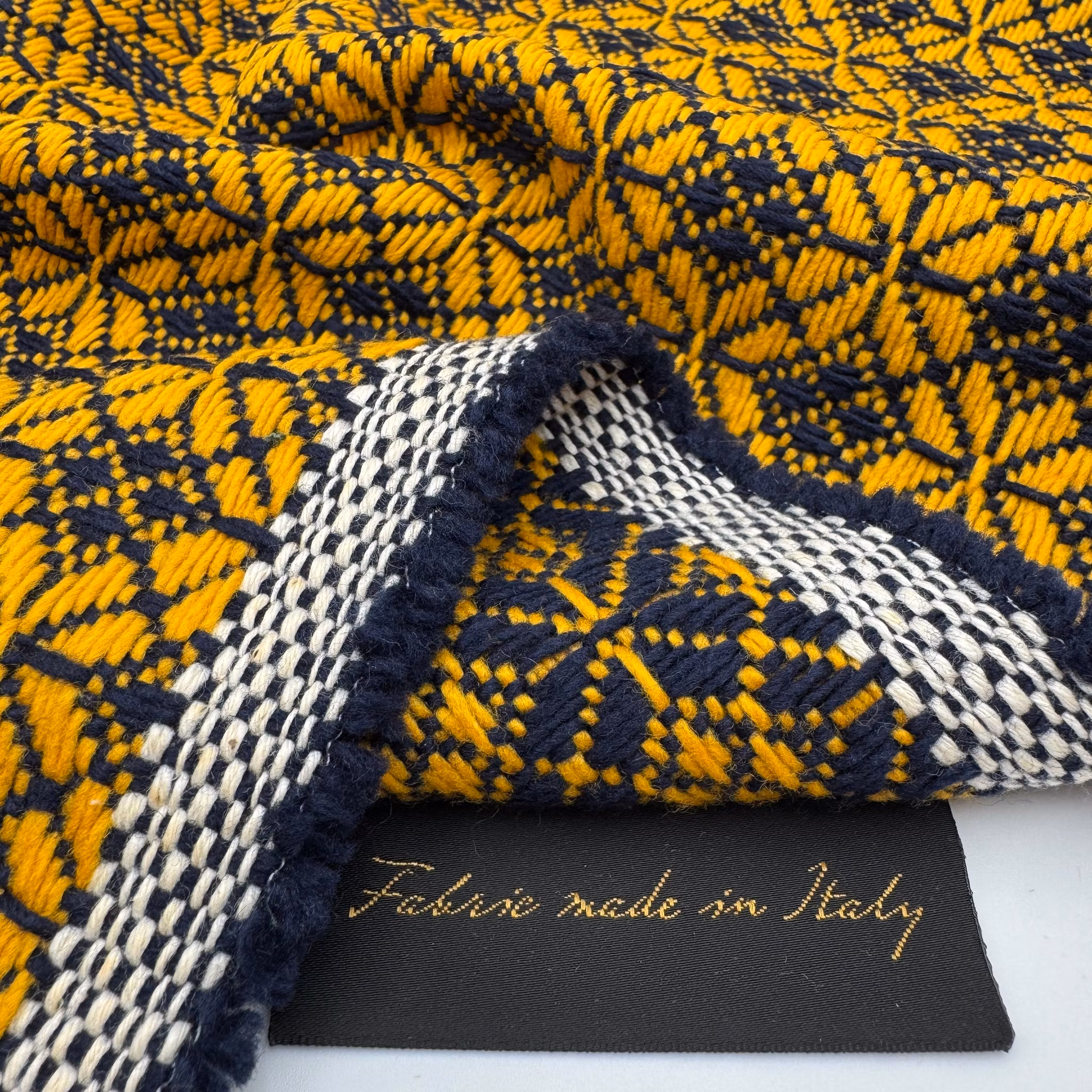 Material: 100% ull, ganska glesvävd, mjukt och följsamt roligt och udda vävsätt (ingen aning om vad det kallas). Gucci möte folklore.