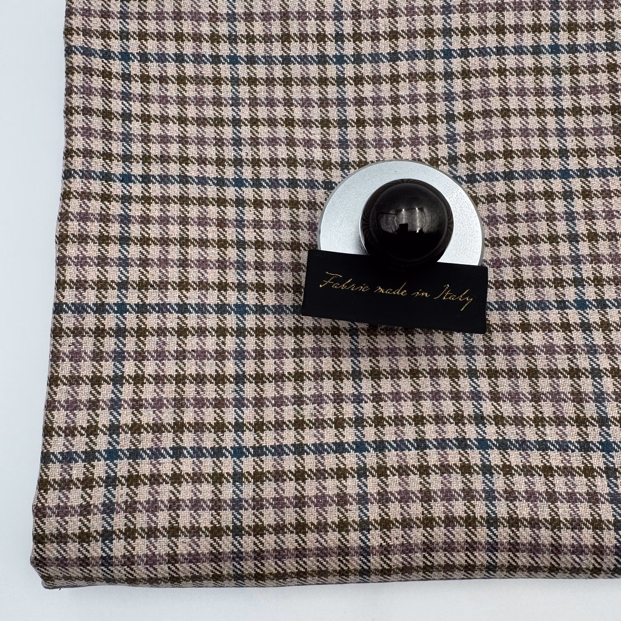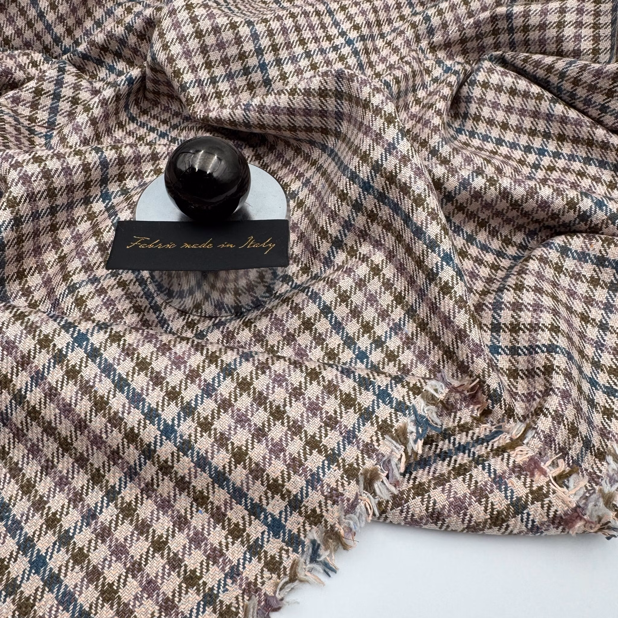 Färg: Laxrosa botten, rutor i brunt perolblått och ljunglila