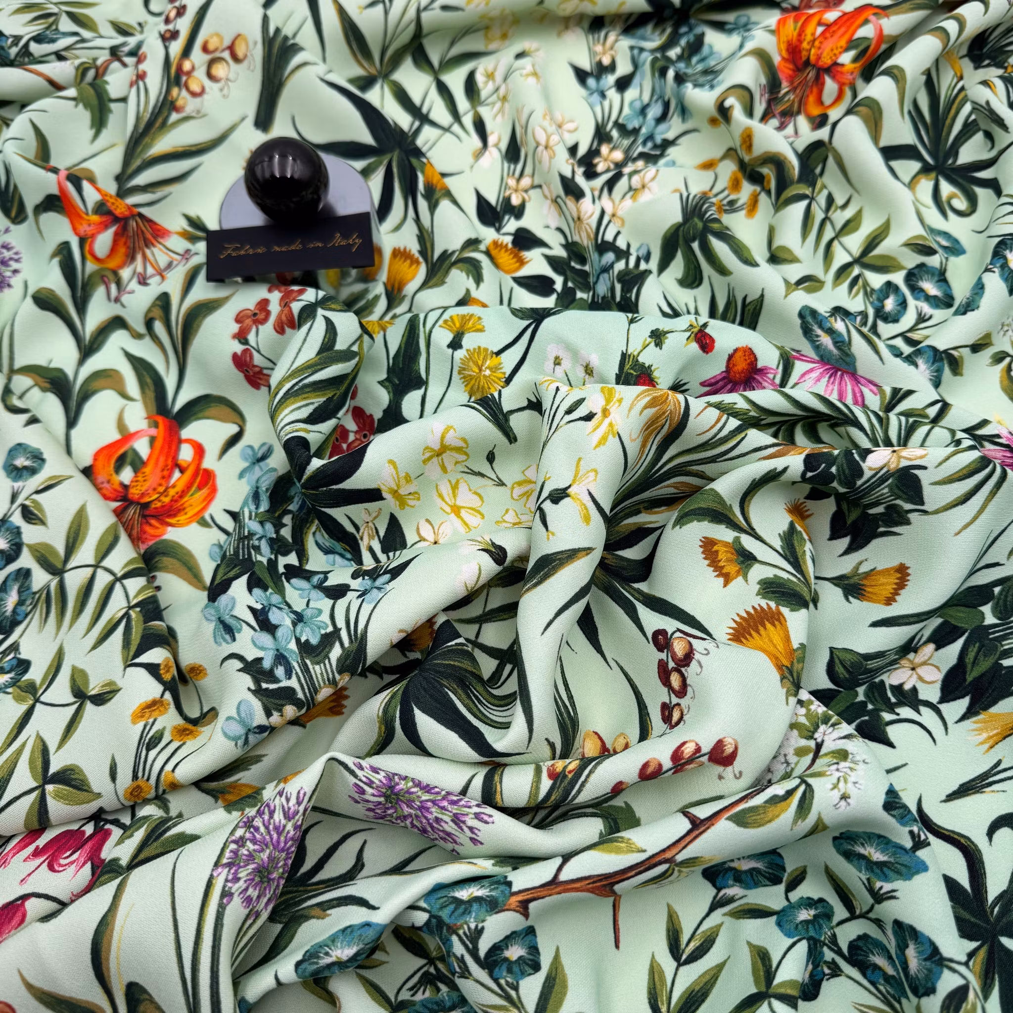 Färg: Mintgrön botten, blommor i alla färger.