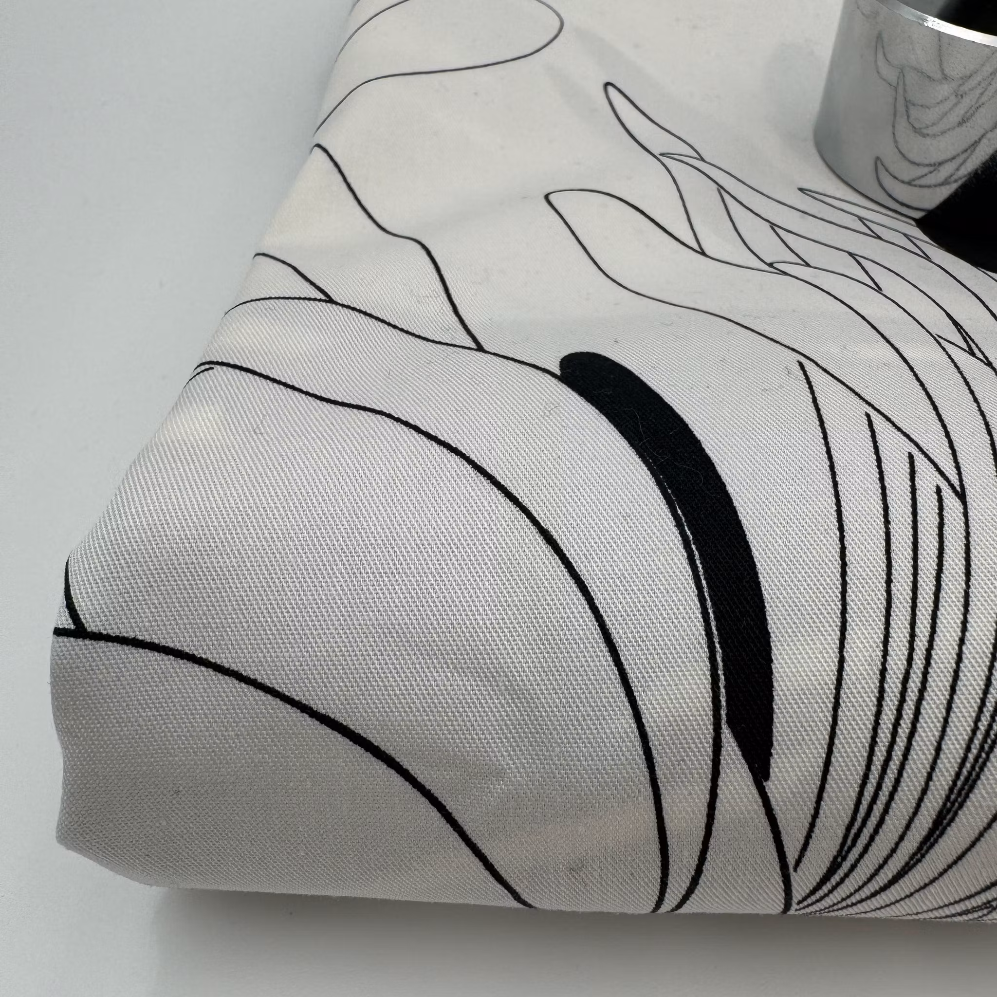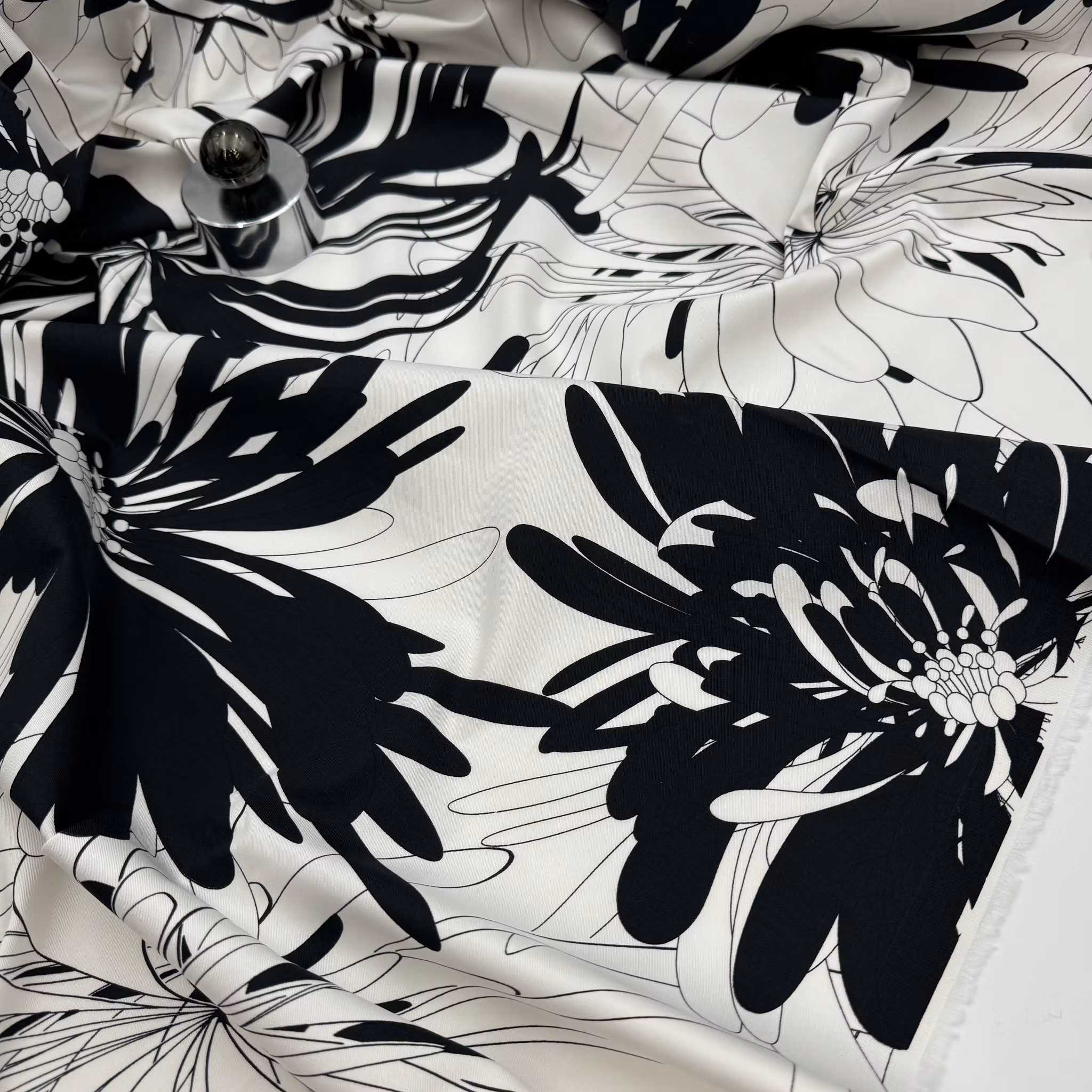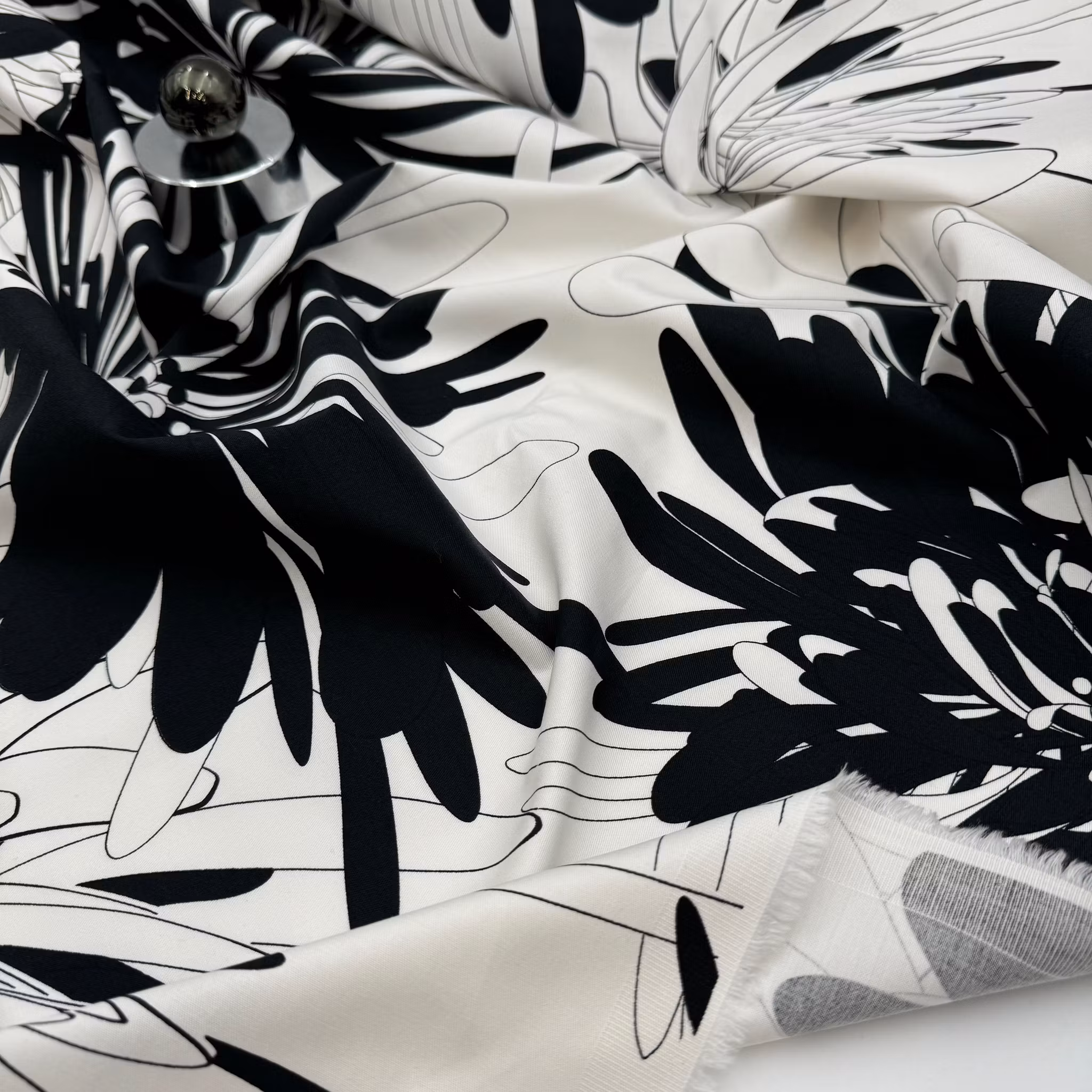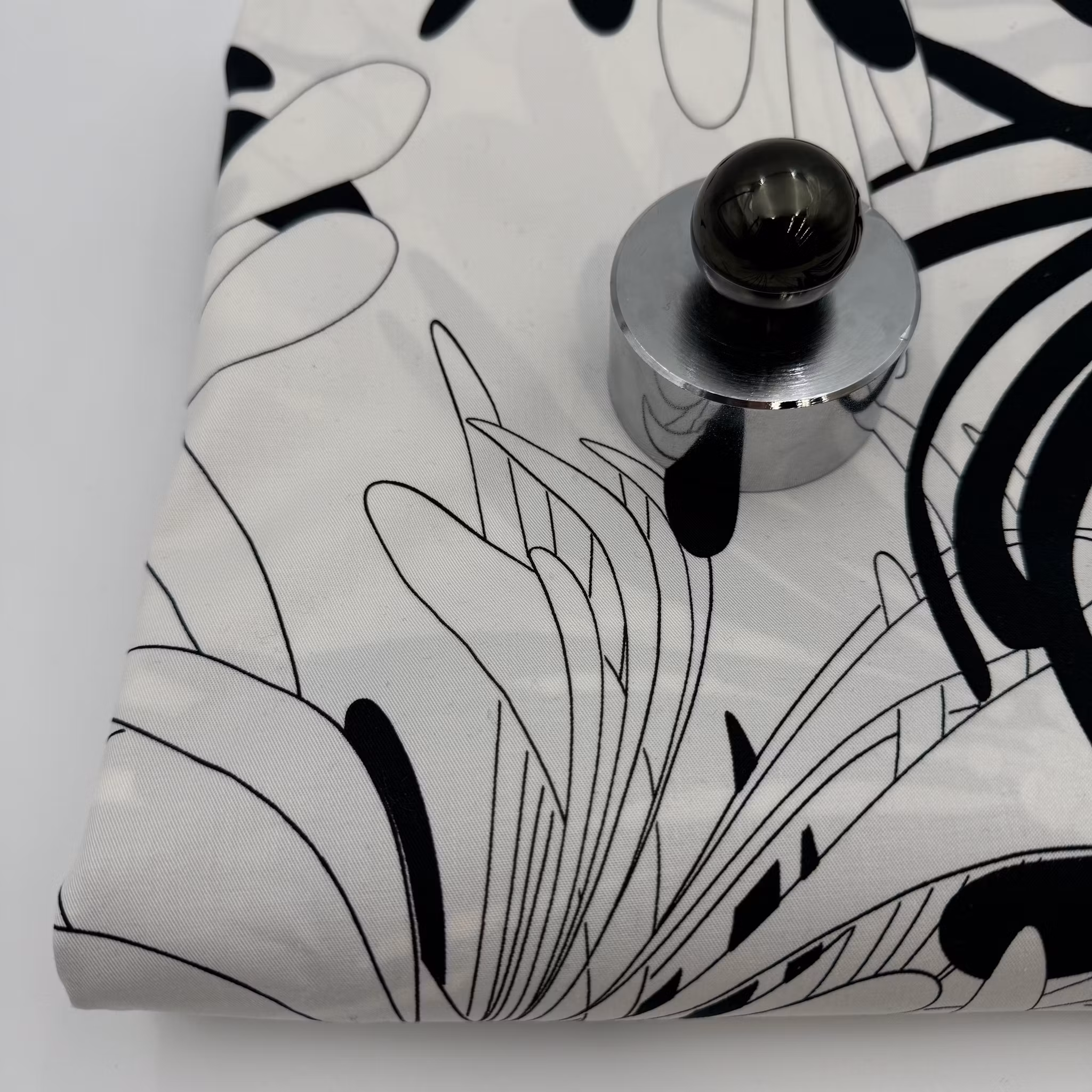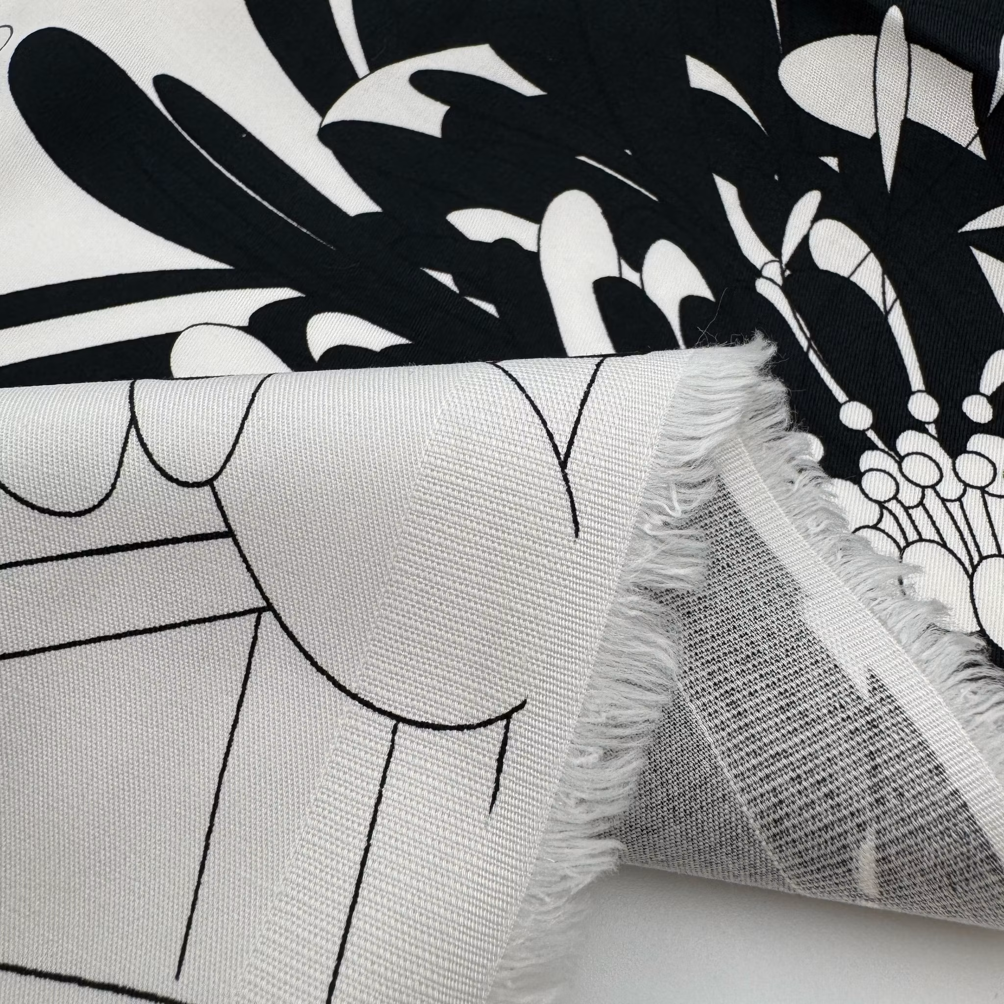 Färg: vit botten, svart stiliserat blommönster