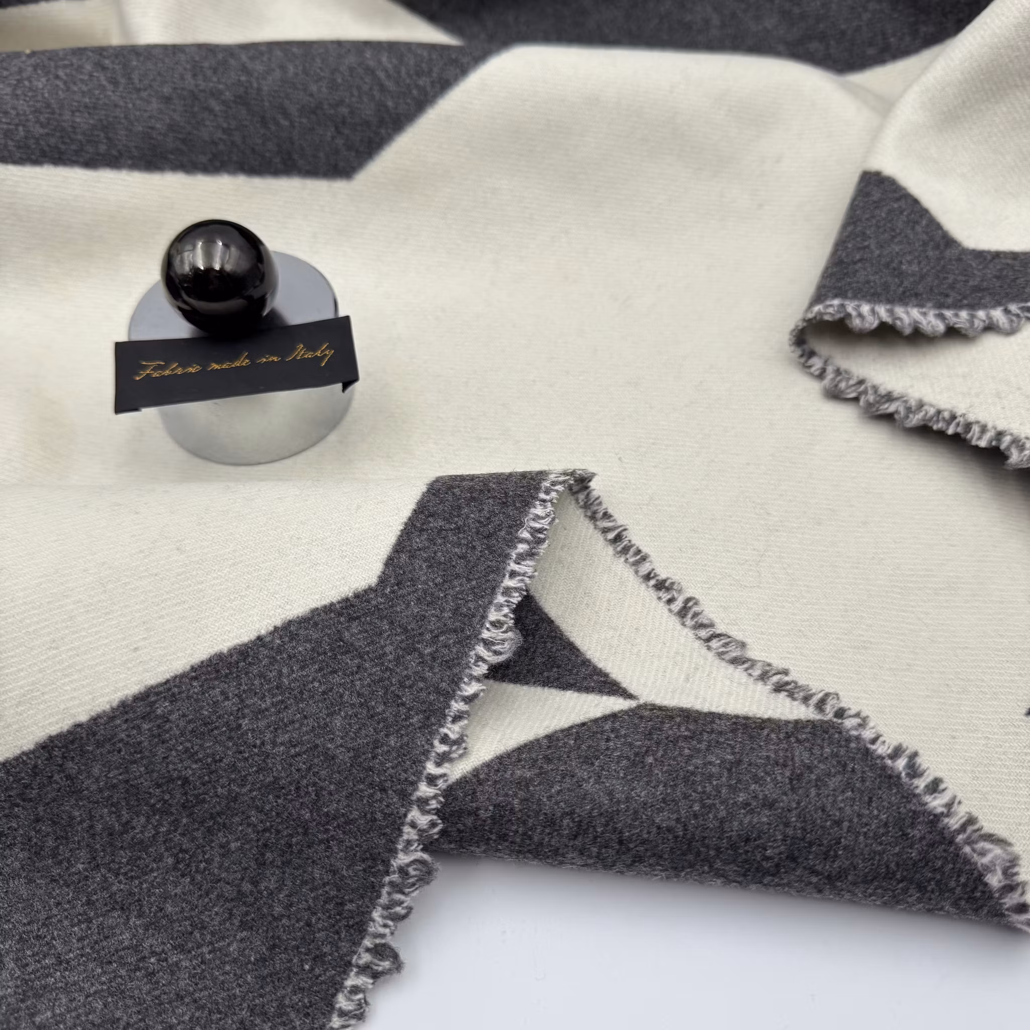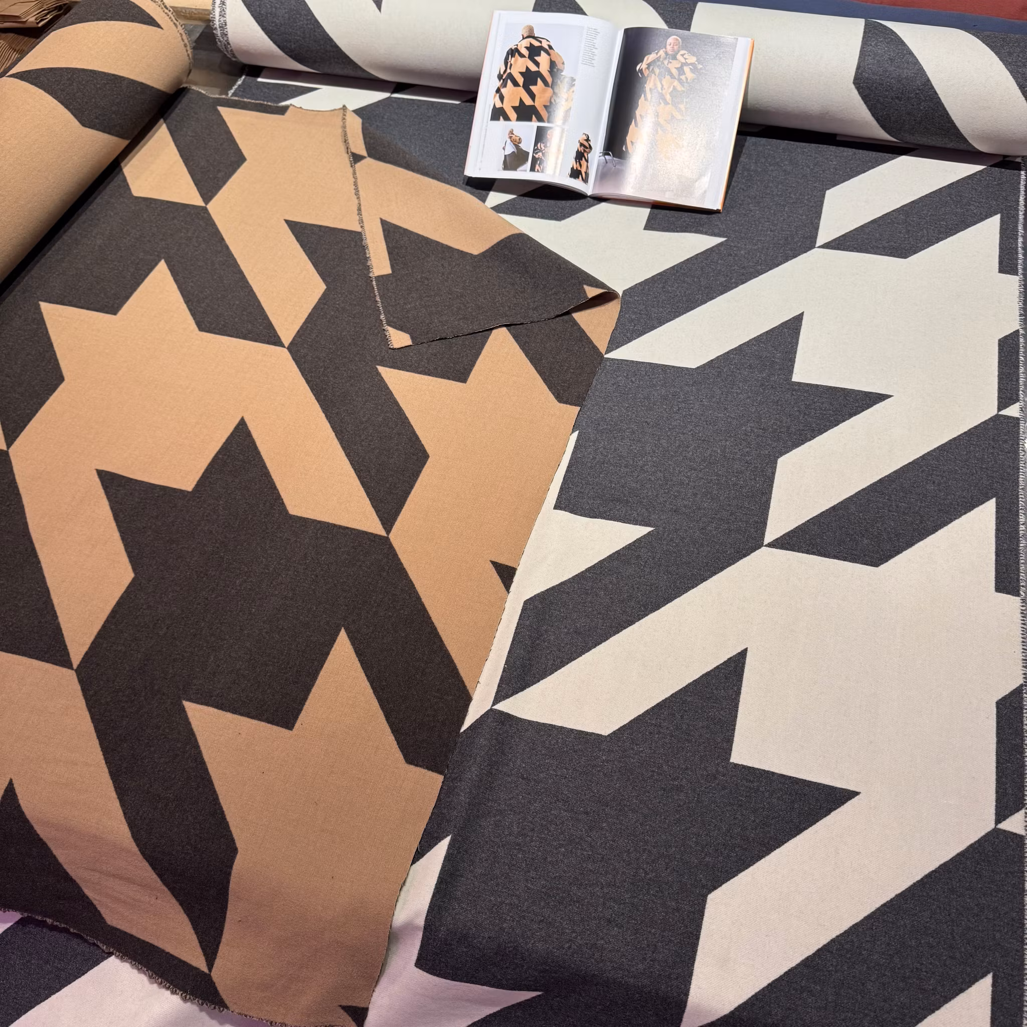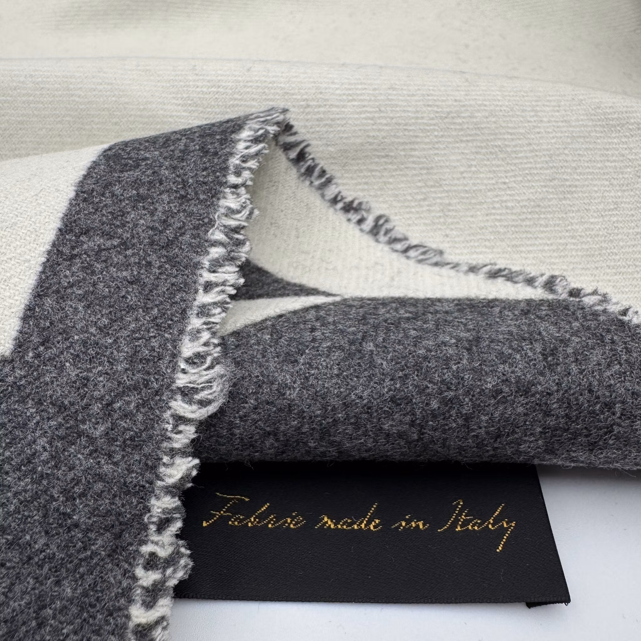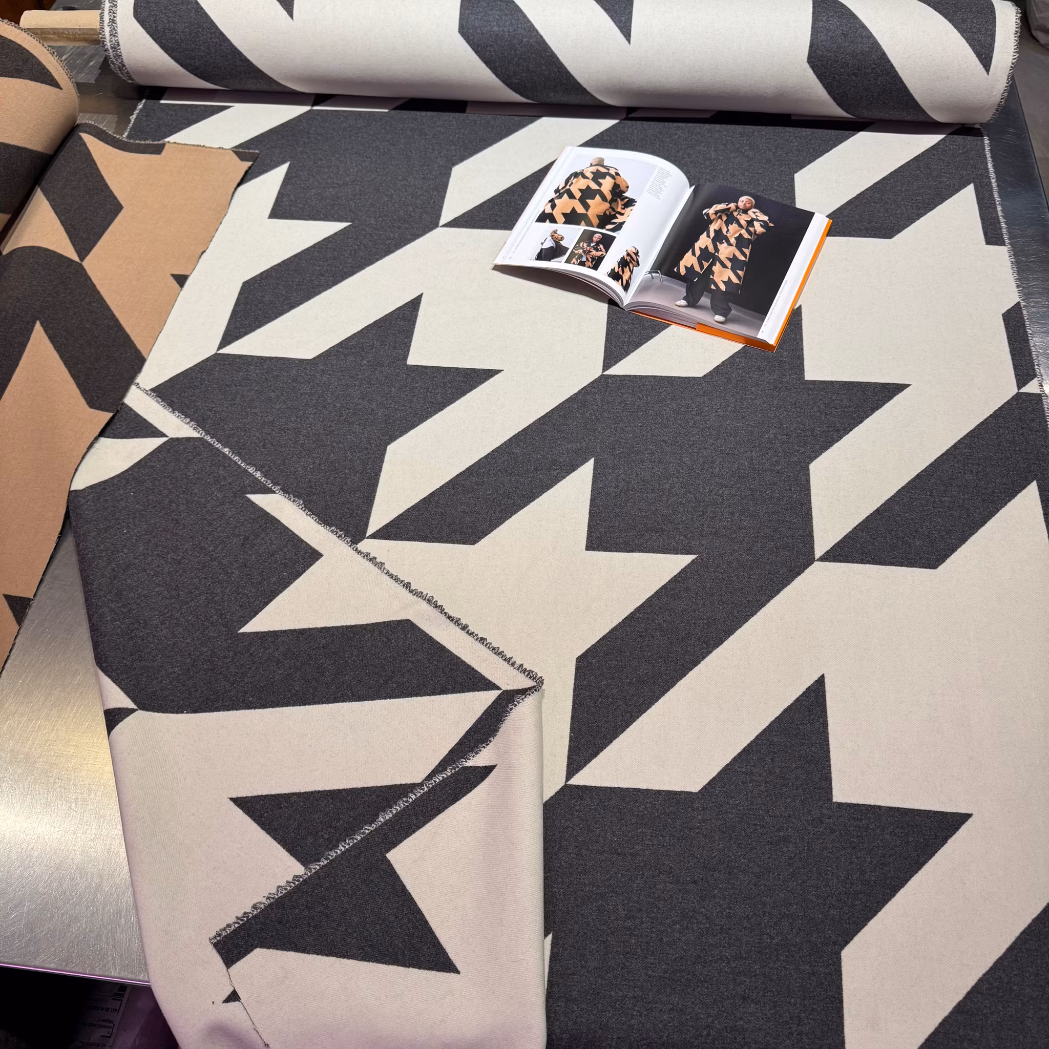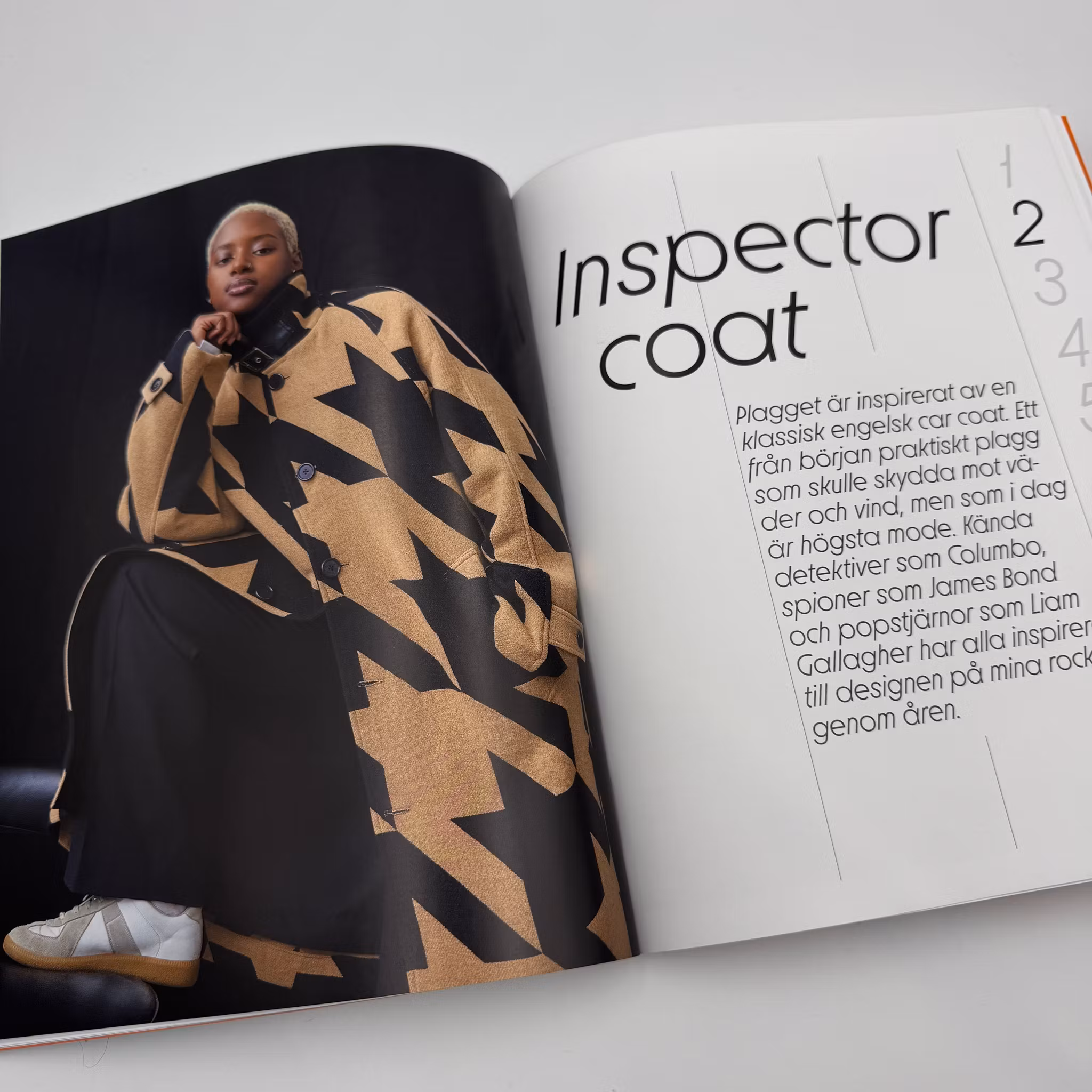 Material: 100% ull, dubbelvävd, följsam, mellankraftig kvalitet, lätt att sy i, känns hållbar.