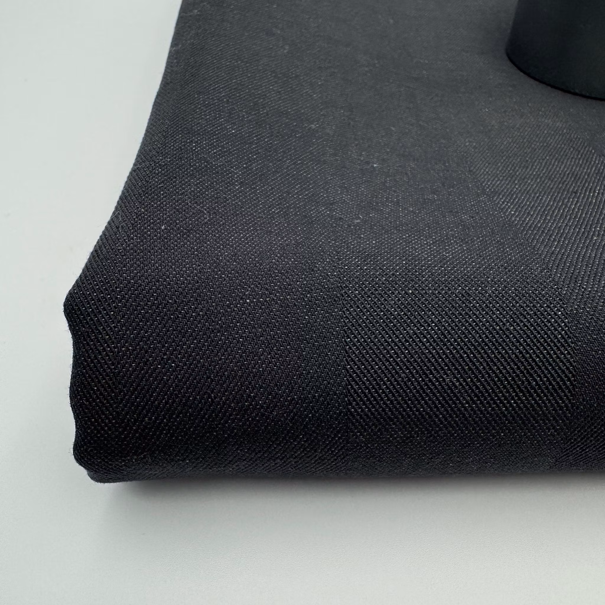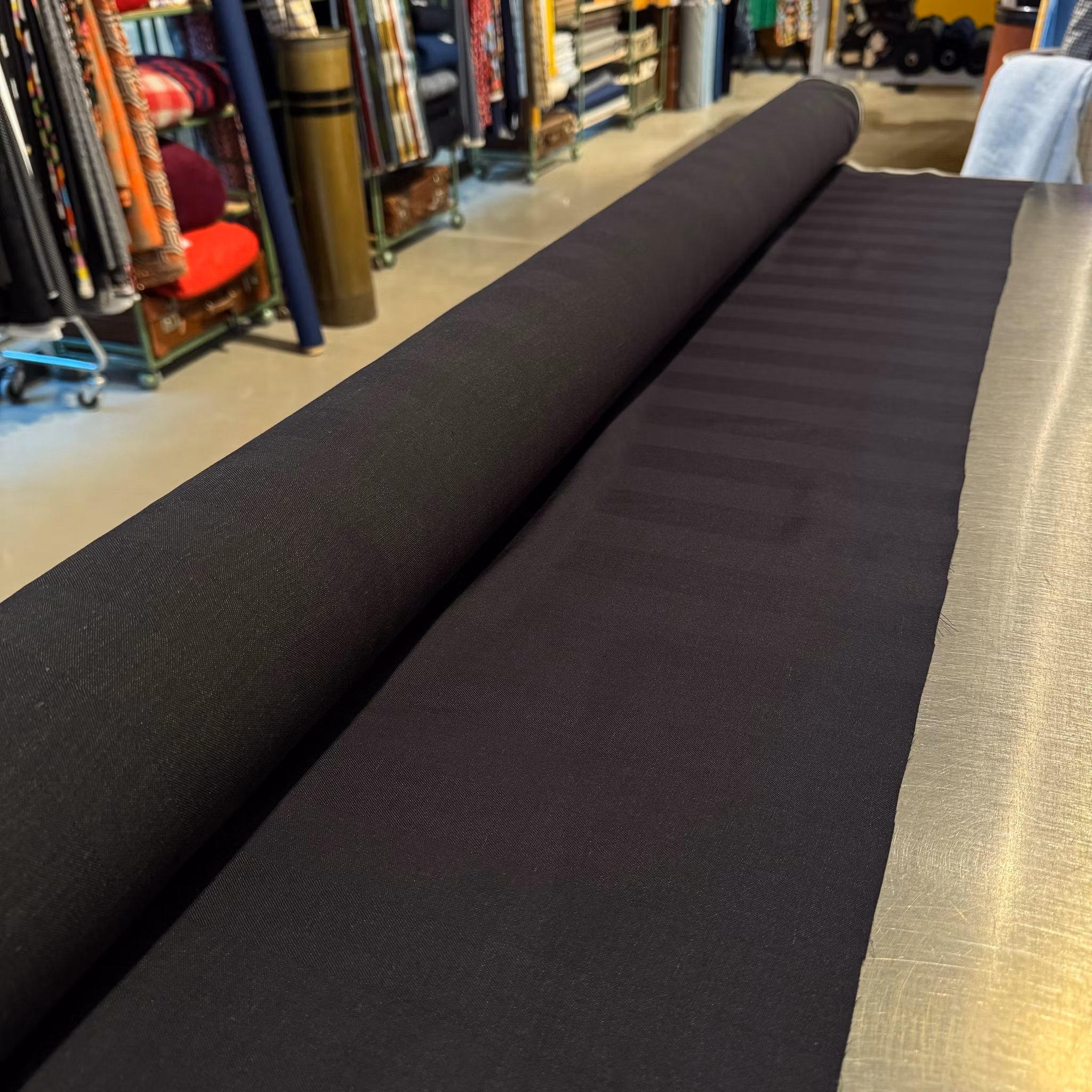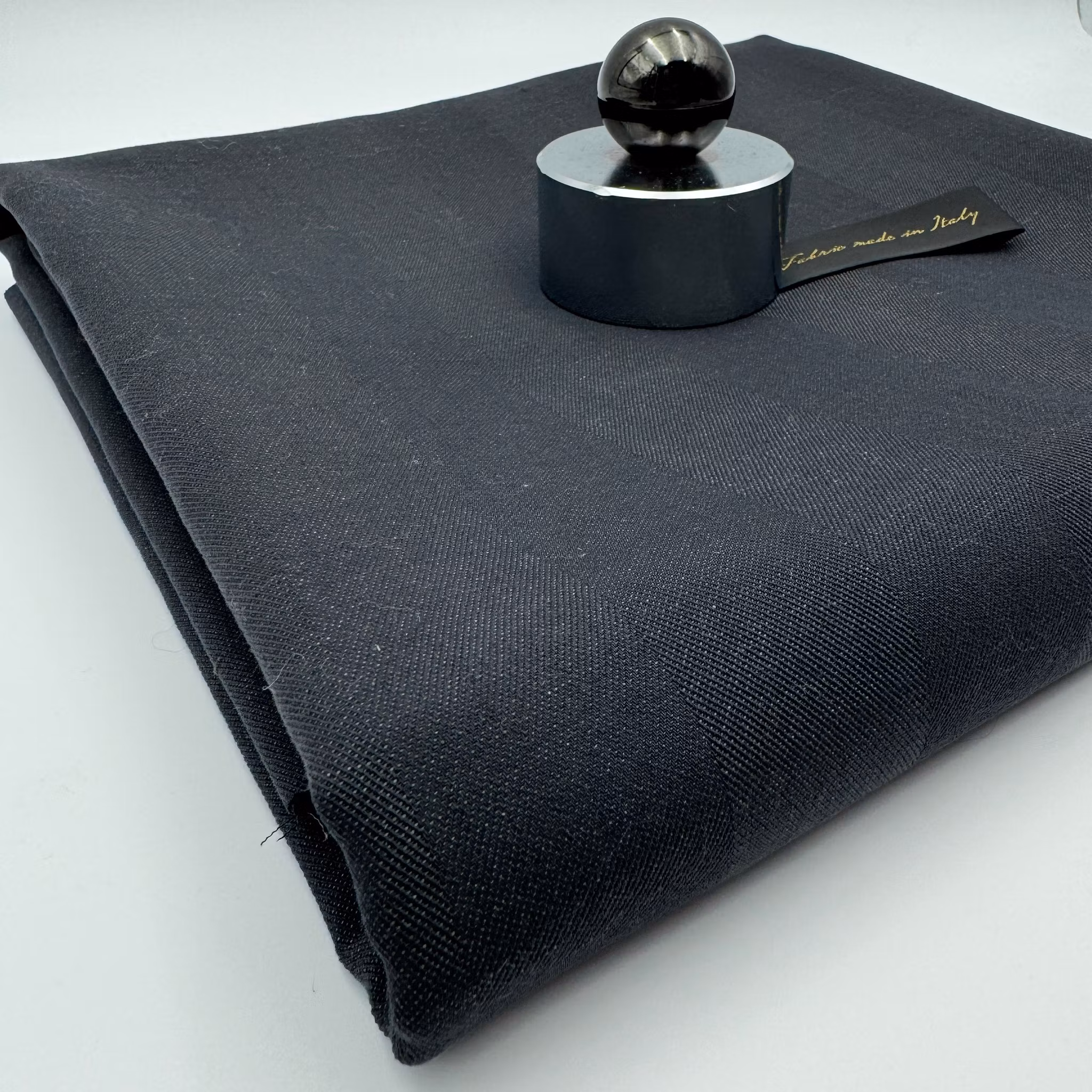 Material: 76% ull, 24% lin, subtilt fiskben. Tänk normaltjockt linne till klänning eller skjorta eller tunnare kostymull. Mjukt och skrynklar minimalt tack vare hög andel ull.