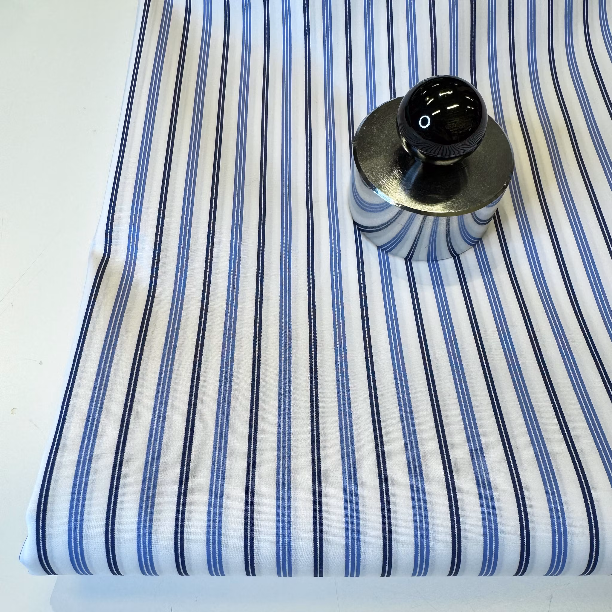 Färg: Vit botten, smala klarblå och marinblå ränder på längden.