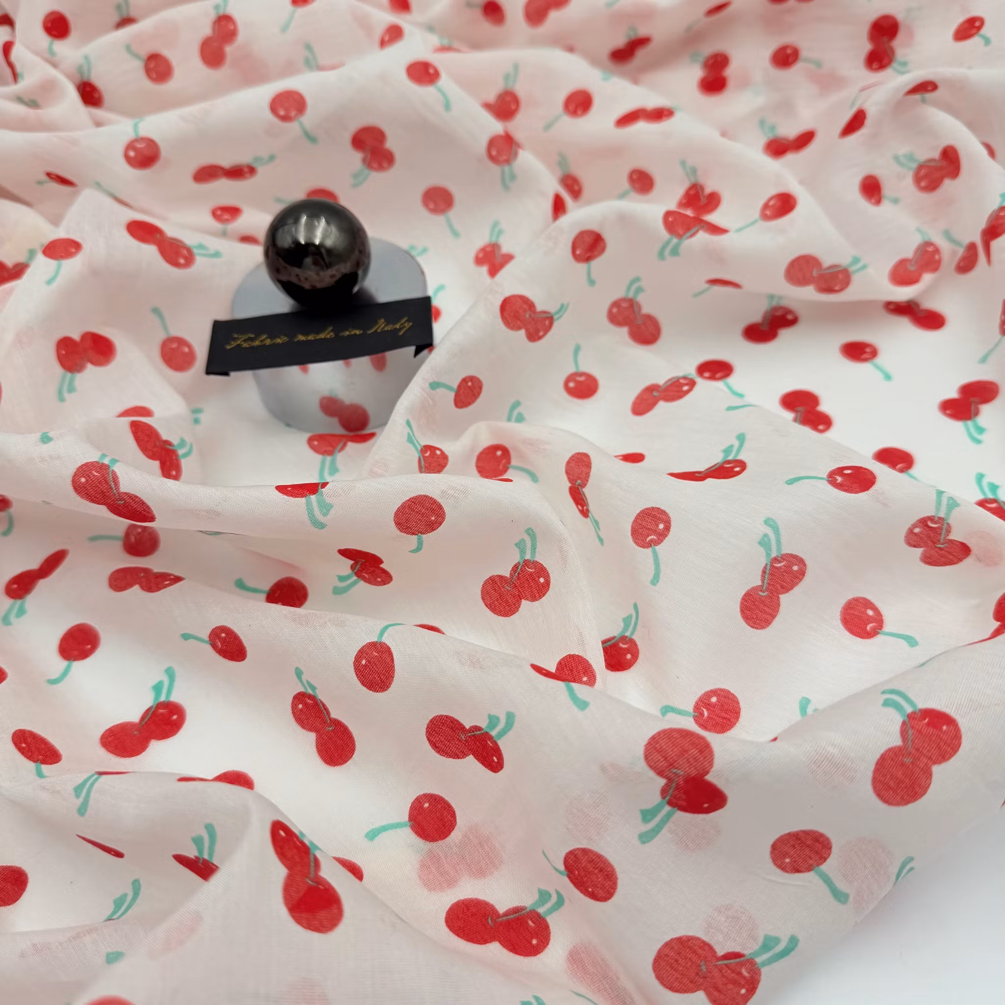 Färg: vit botten, klarröda körsbär.