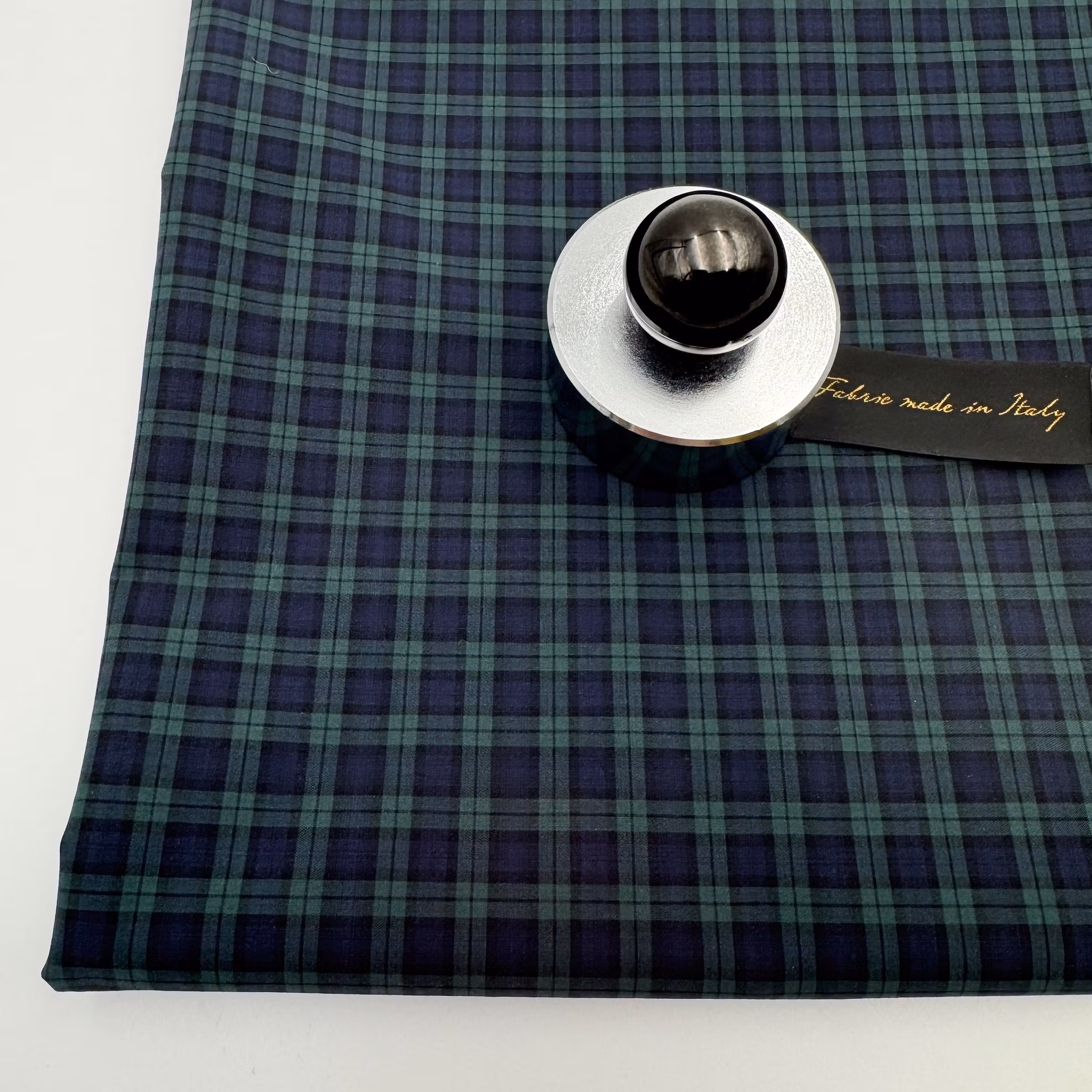 1,6m Bomull blå/svart/grön ruta Cacharell* med klipp i kanten