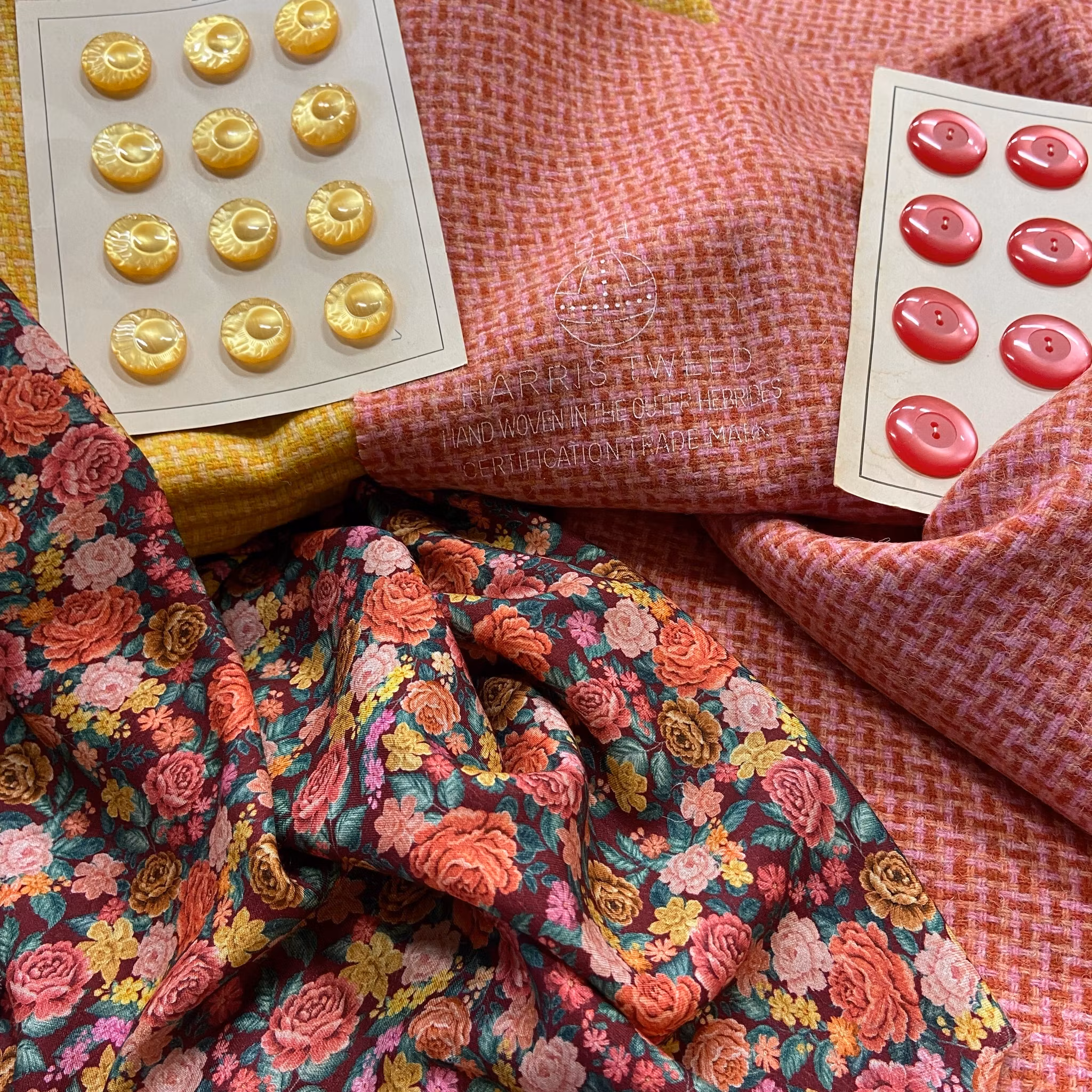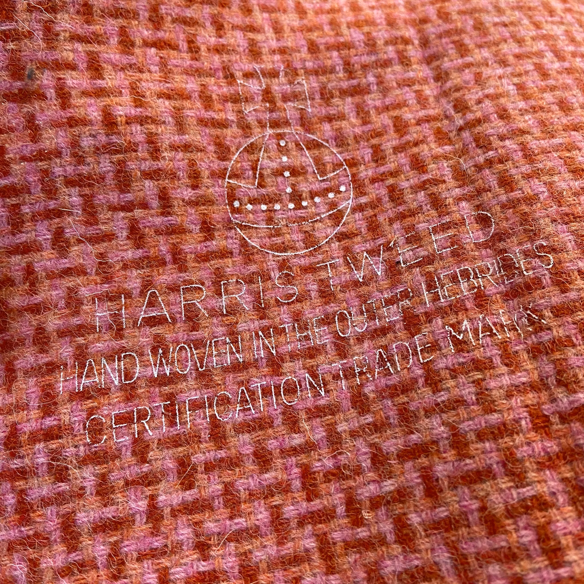 Märke: Harris tweed, handvävt på Yttre Hebriderna.