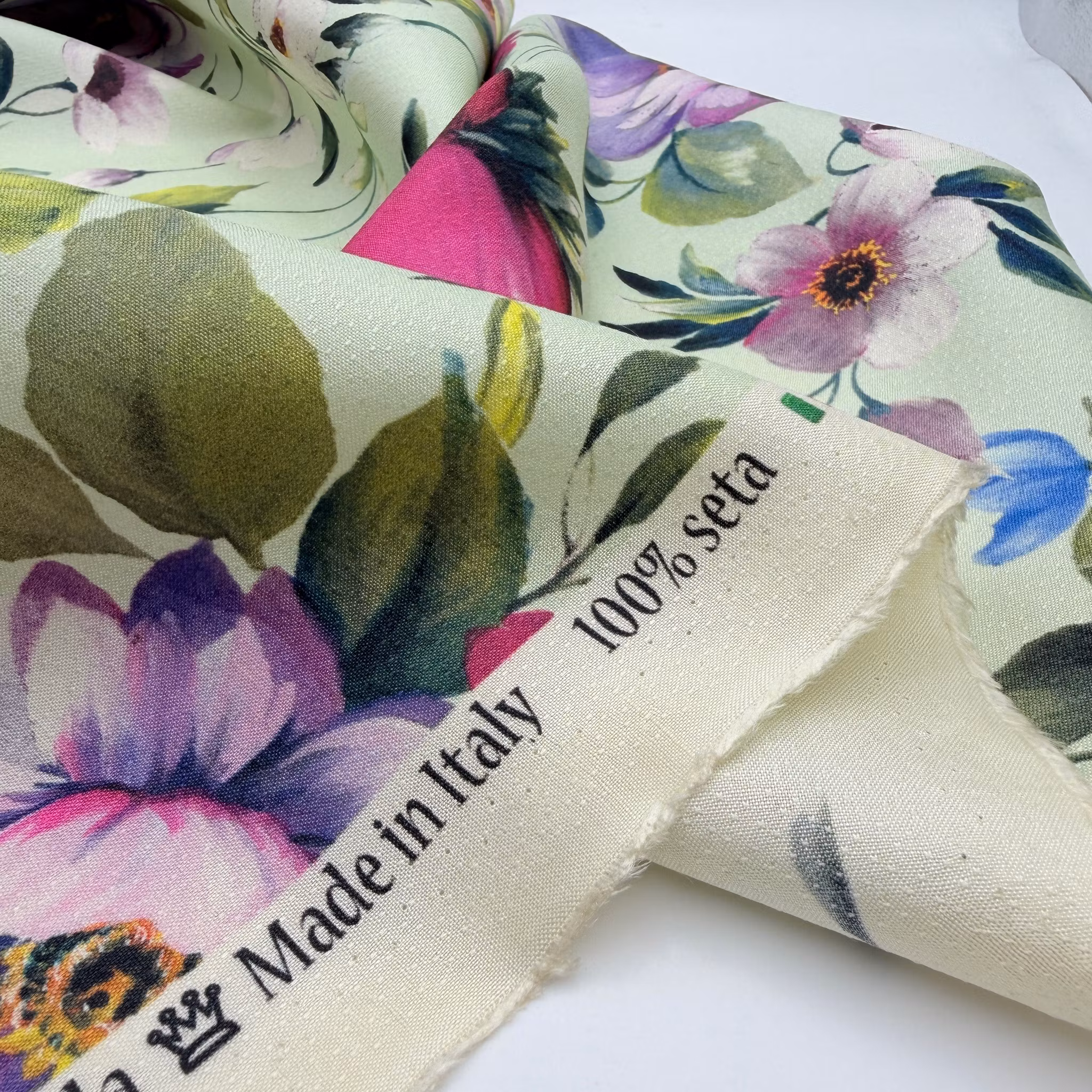 Tvättråd: Vi får inga tvättråd från våra italienska leverantörer, så vi rekommenderar att man provtvättar en liten bit först.