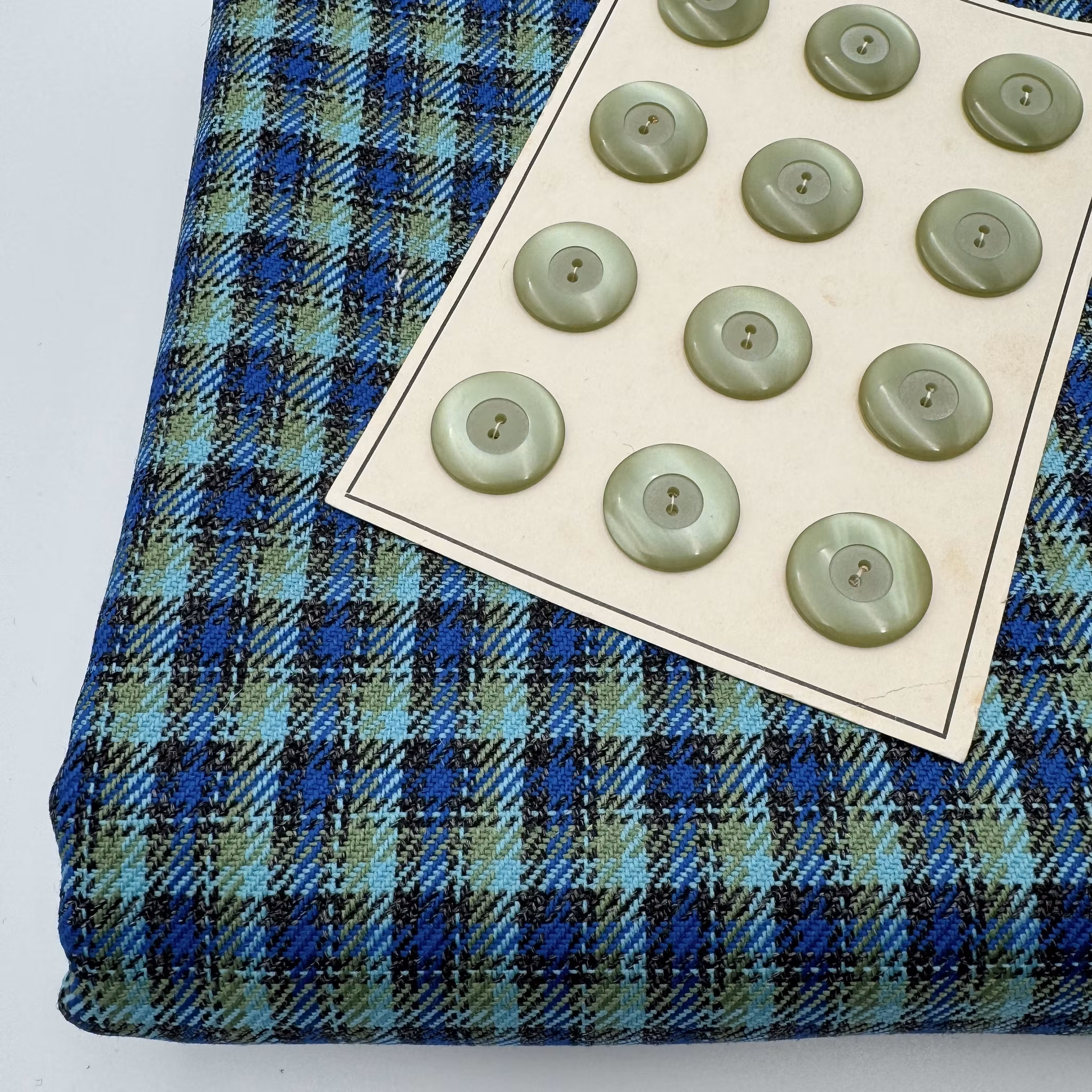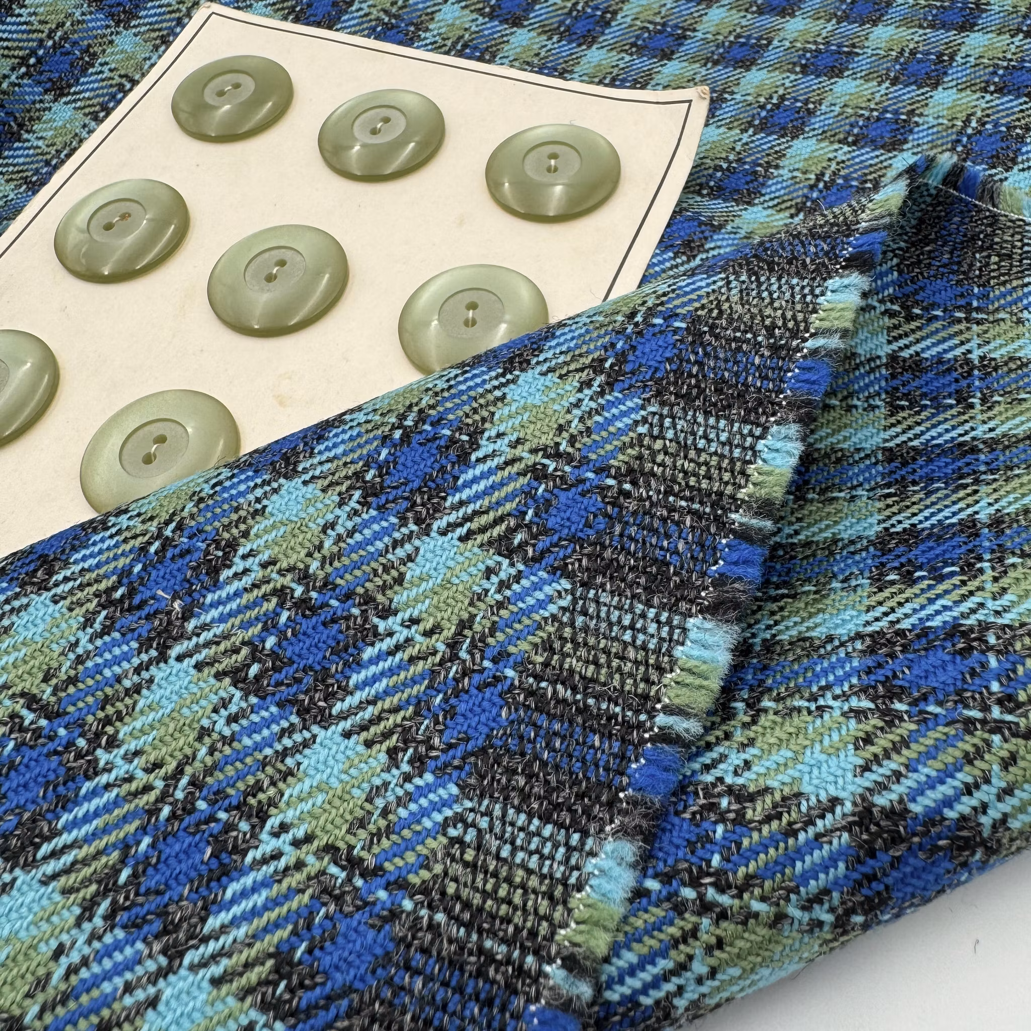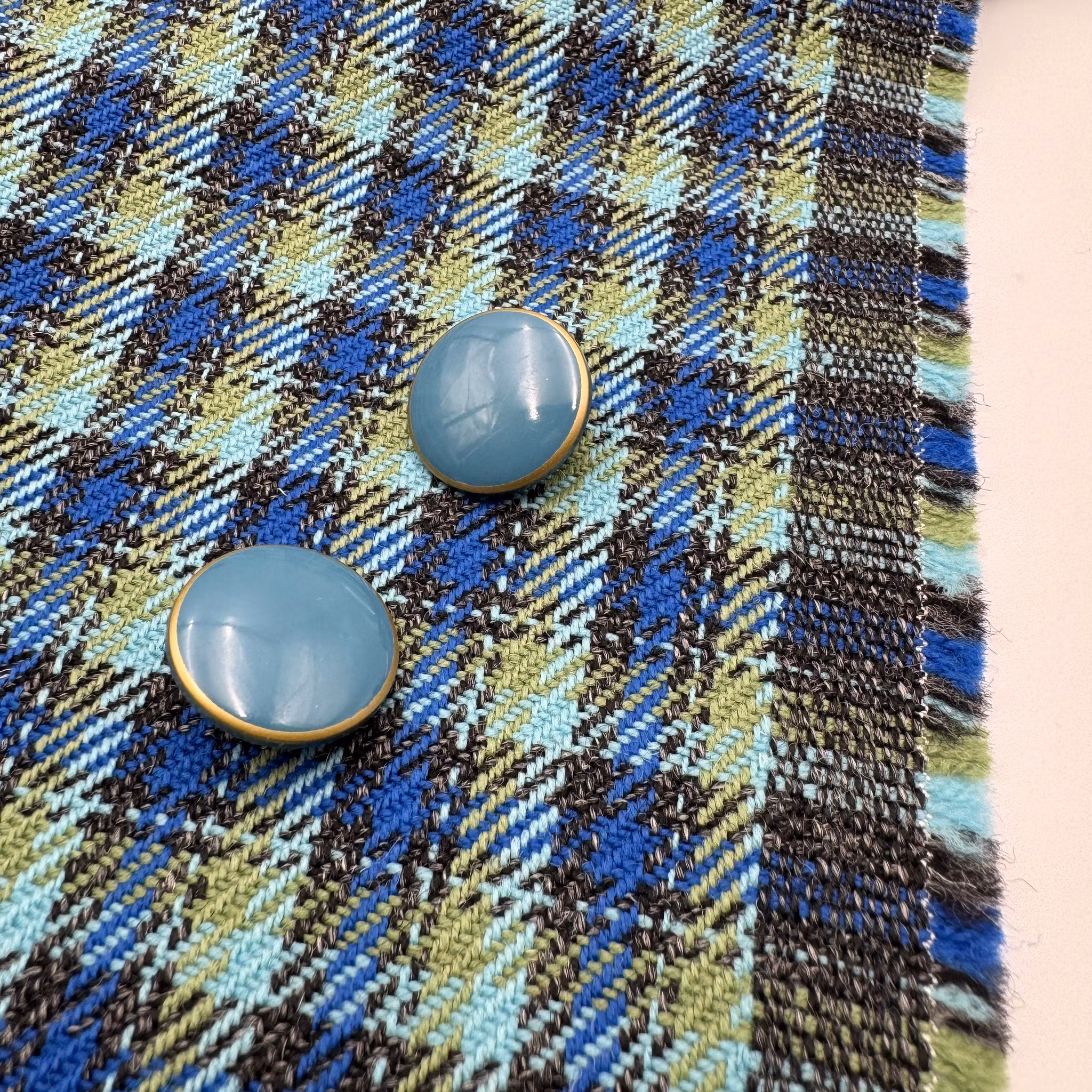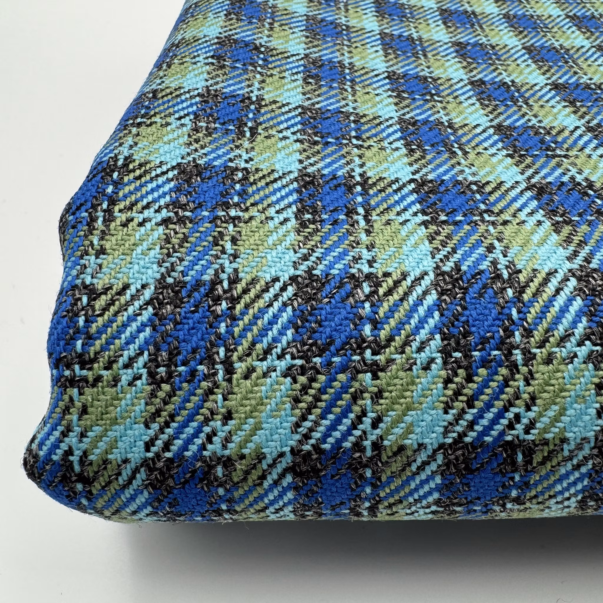 Färg: Klarblå, ljusblå och gulgrön rutig