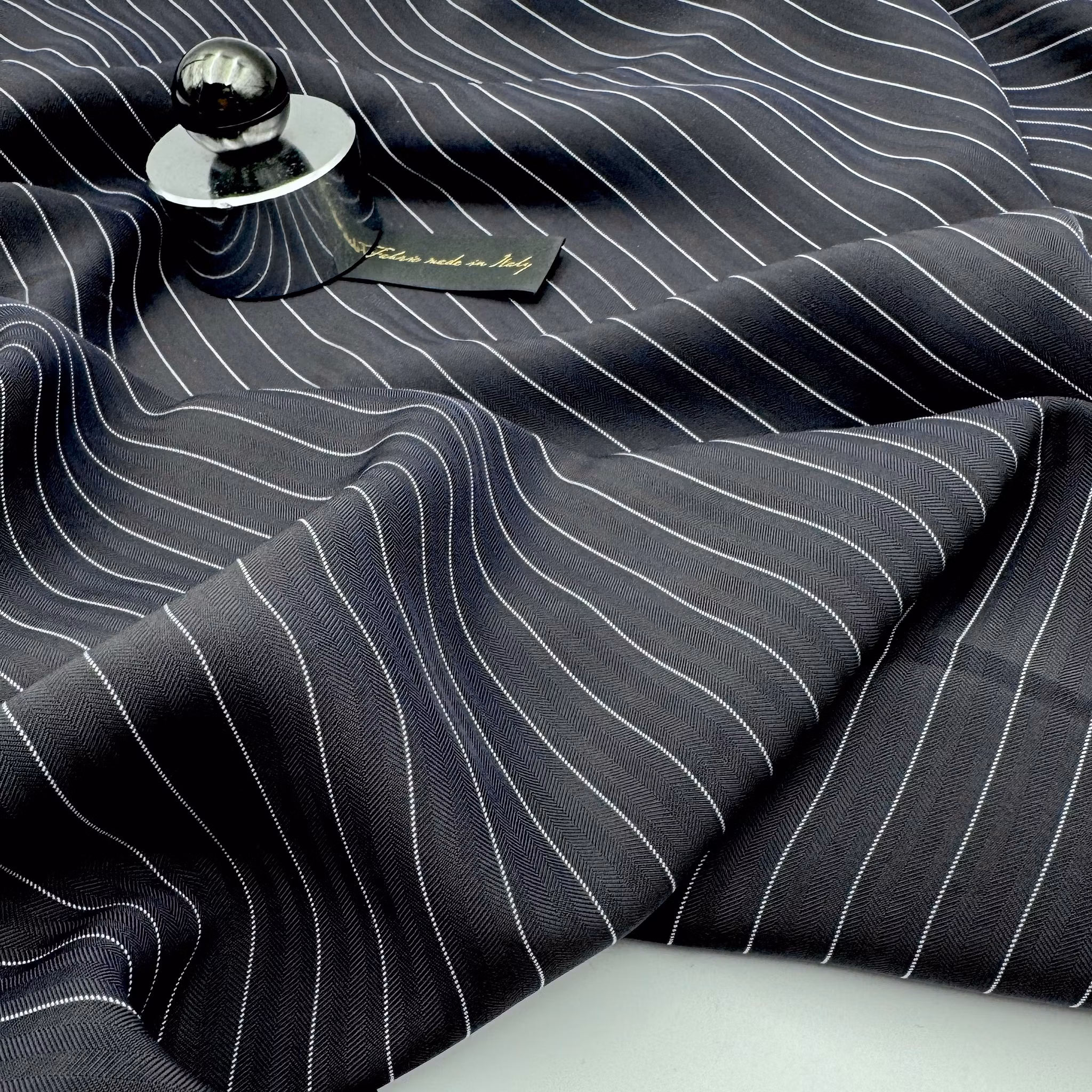 Färg: Mörk marinblått med vita kritstreck på bredden.