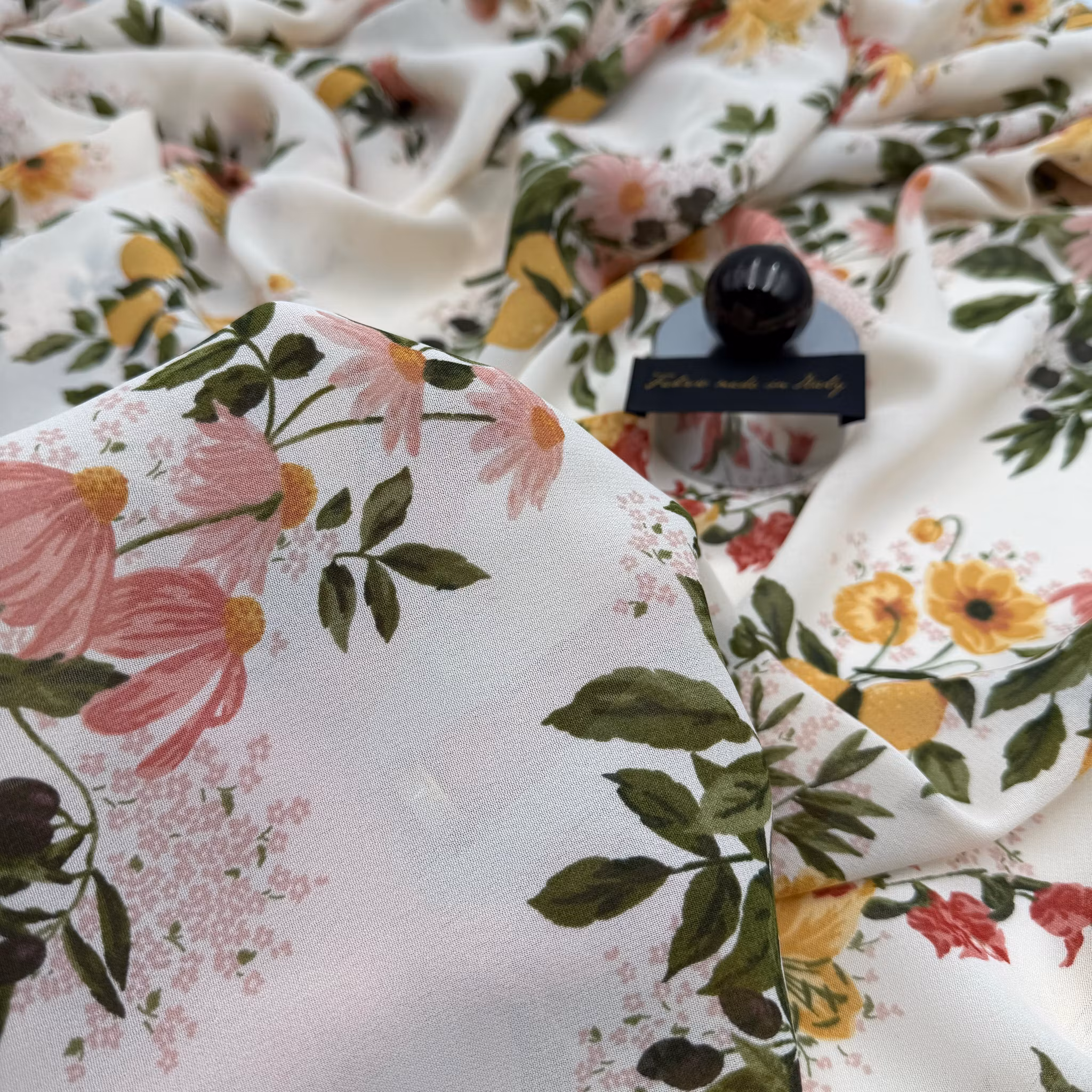Färg: gräddvit botten, buketter och citroner i milda rosa, gula och gröna toner.