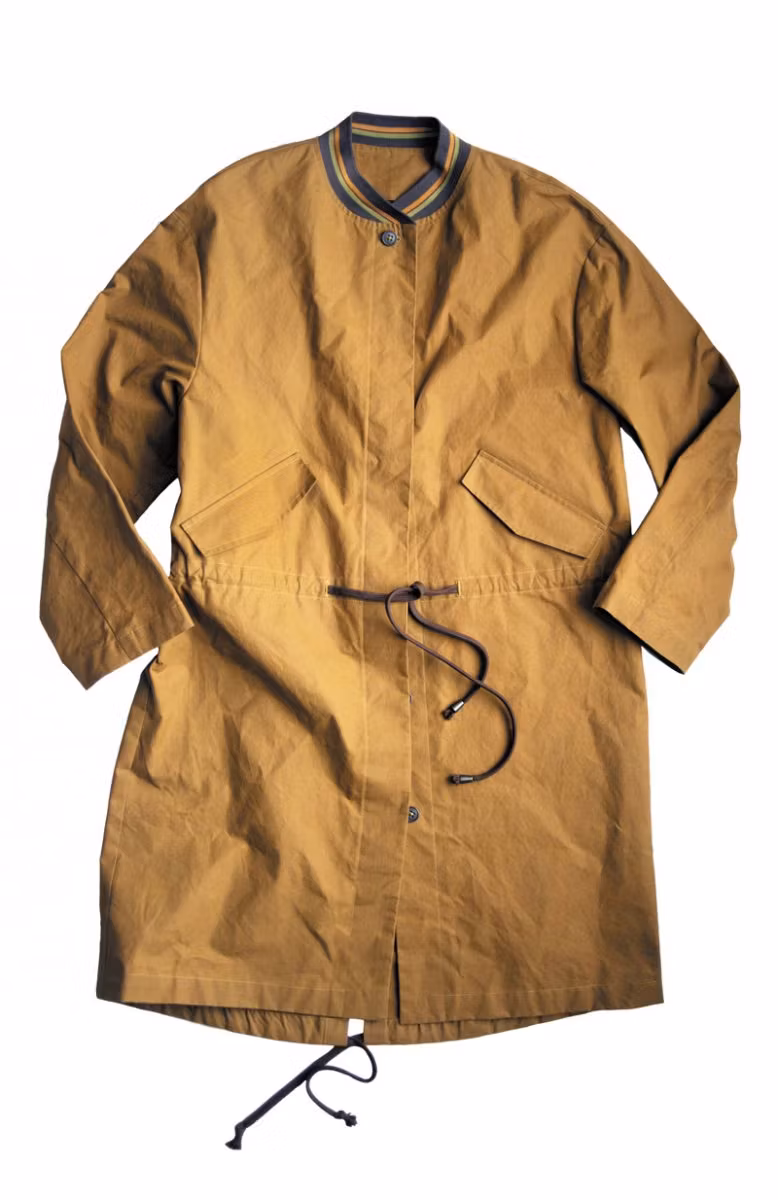 Cool rock/kappa i unisexmodell med muddremsa i halsen och dragsko i midjan. Välj ett kraftigare tyg till den här modellen.