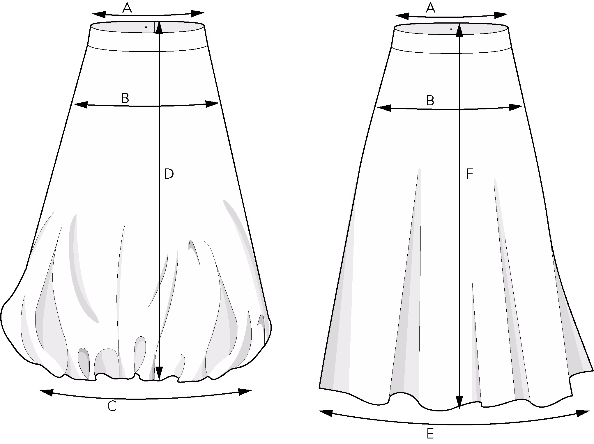 För stilen som visas på bilderna, kombinerade vi kjolen med toppen från vårt gratis pyjamasmönster, Pyjamas pattern,och kortade ärmarna.