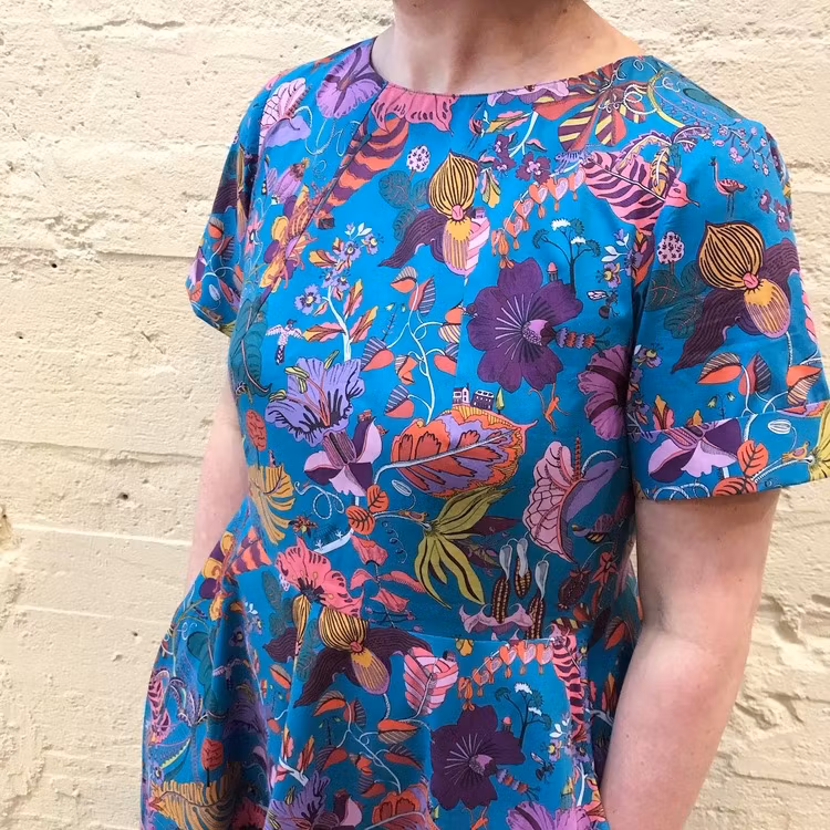 Världens finaste klänning! Mycket vidd i kjolen och fint liv. Dragkedja bak. Välj bland Libertytygerna (Tana Lawn, bomull), de är utmärkta till denna modellen!