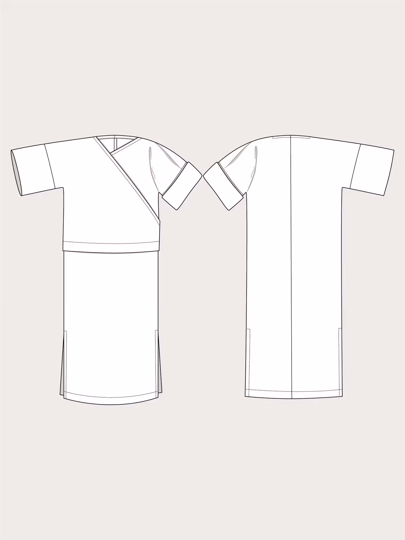 Wrap Top går att göra antingen som top eller som klänning. Den har två olika delar av framstycket som ger plagget en asymmetrisk V-ringning.
