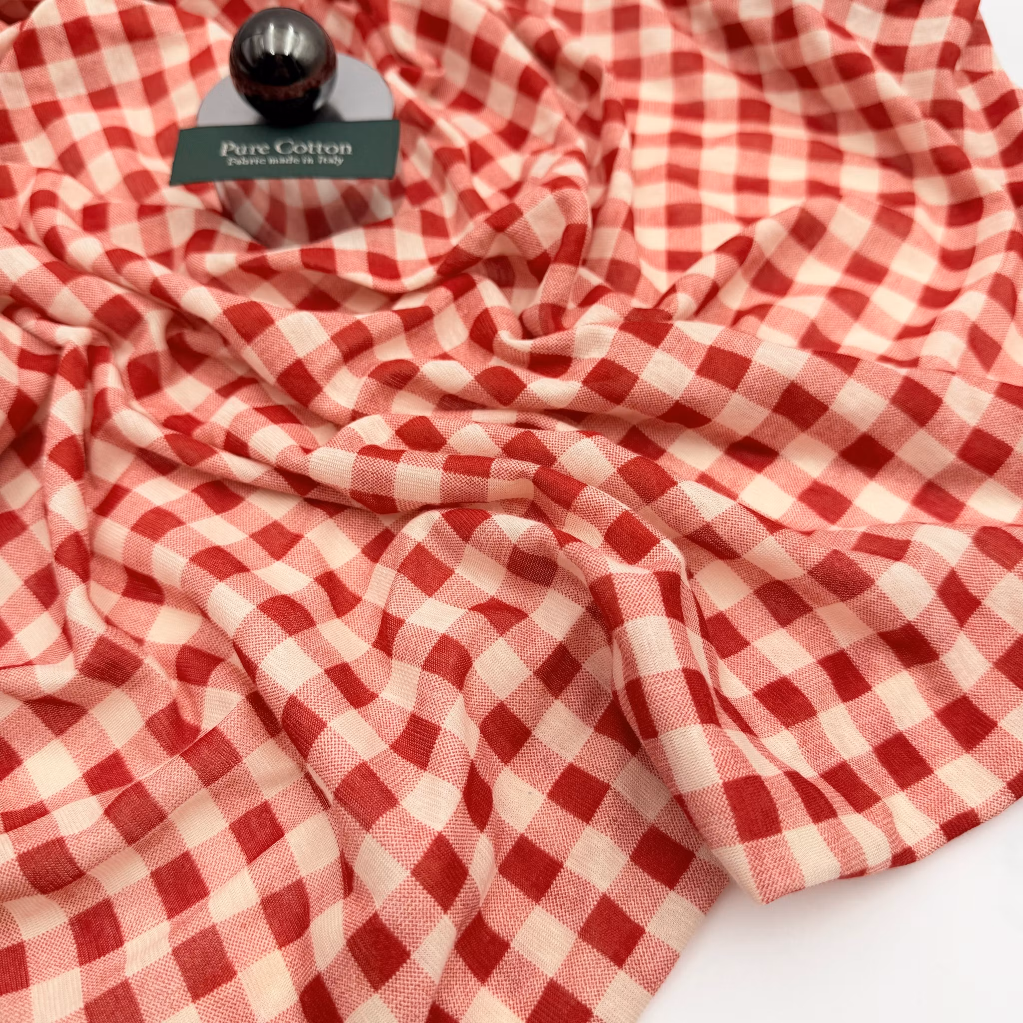 Färg: crèmevit botten, röda tryckta rutor