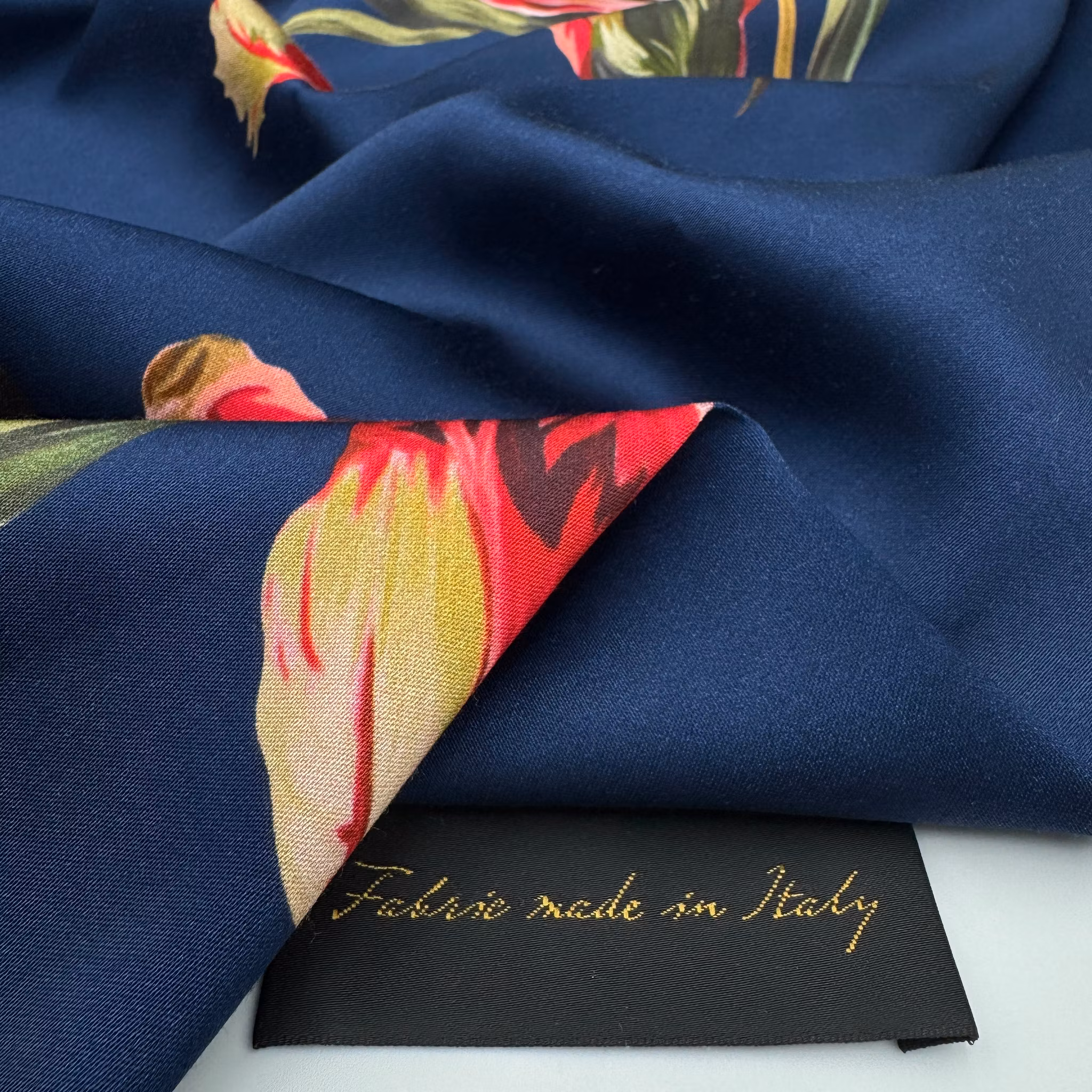 Tvättråd: Vi får inga tvättråd från våra italienska leverantörer, så vi rekommenderar att man provtvättar en liten bit först.