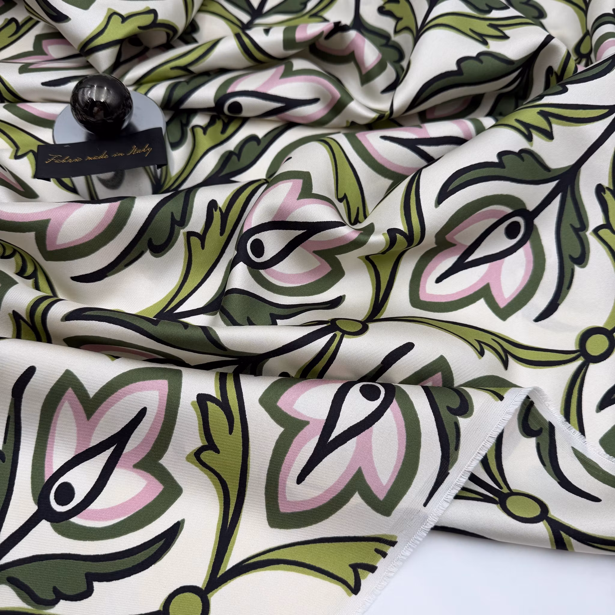 Färg: Gäddvit botten, blommor och blad i grönt och rosa.
