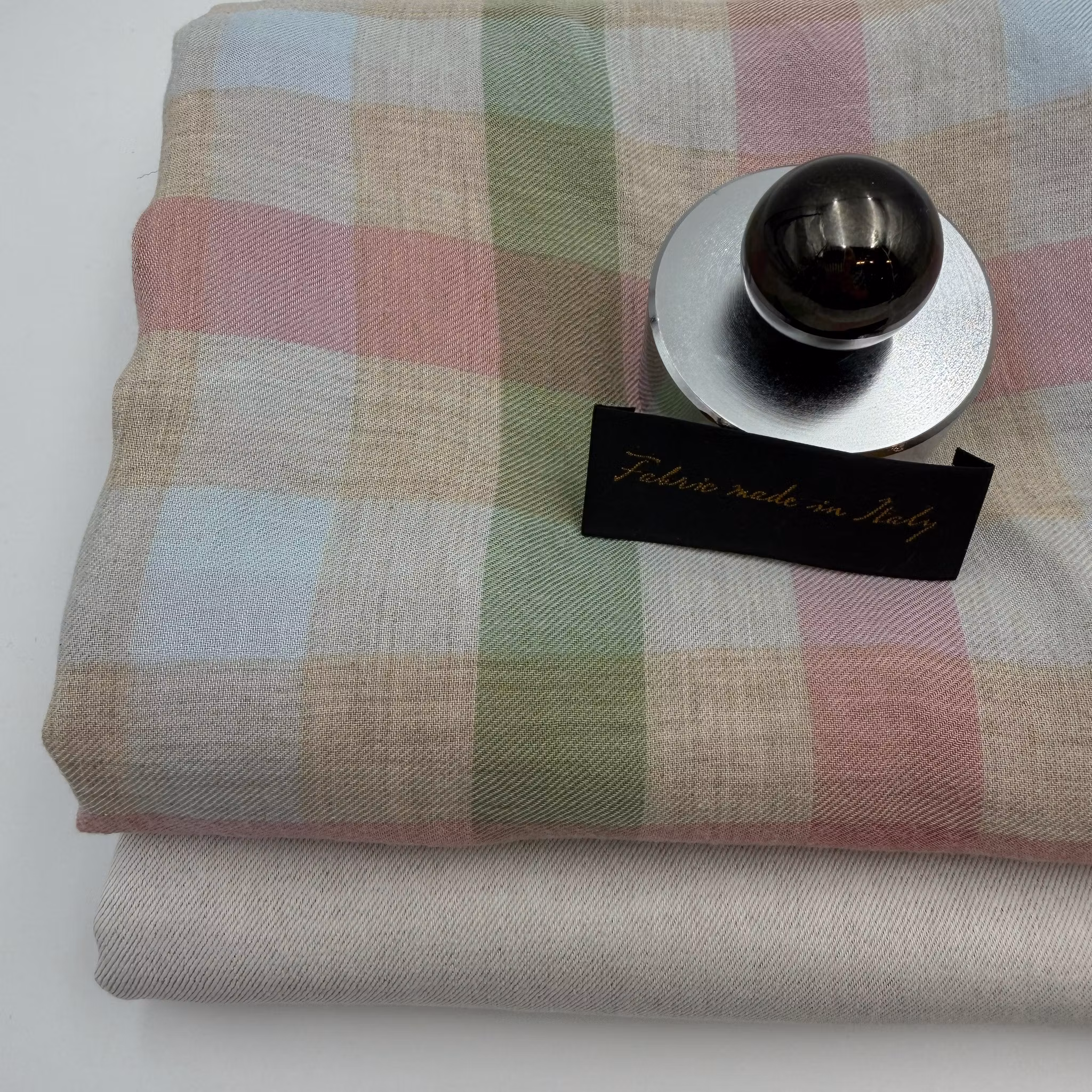 Färg: linnefärgad botten, rosa, gröna och ljusblå rutor