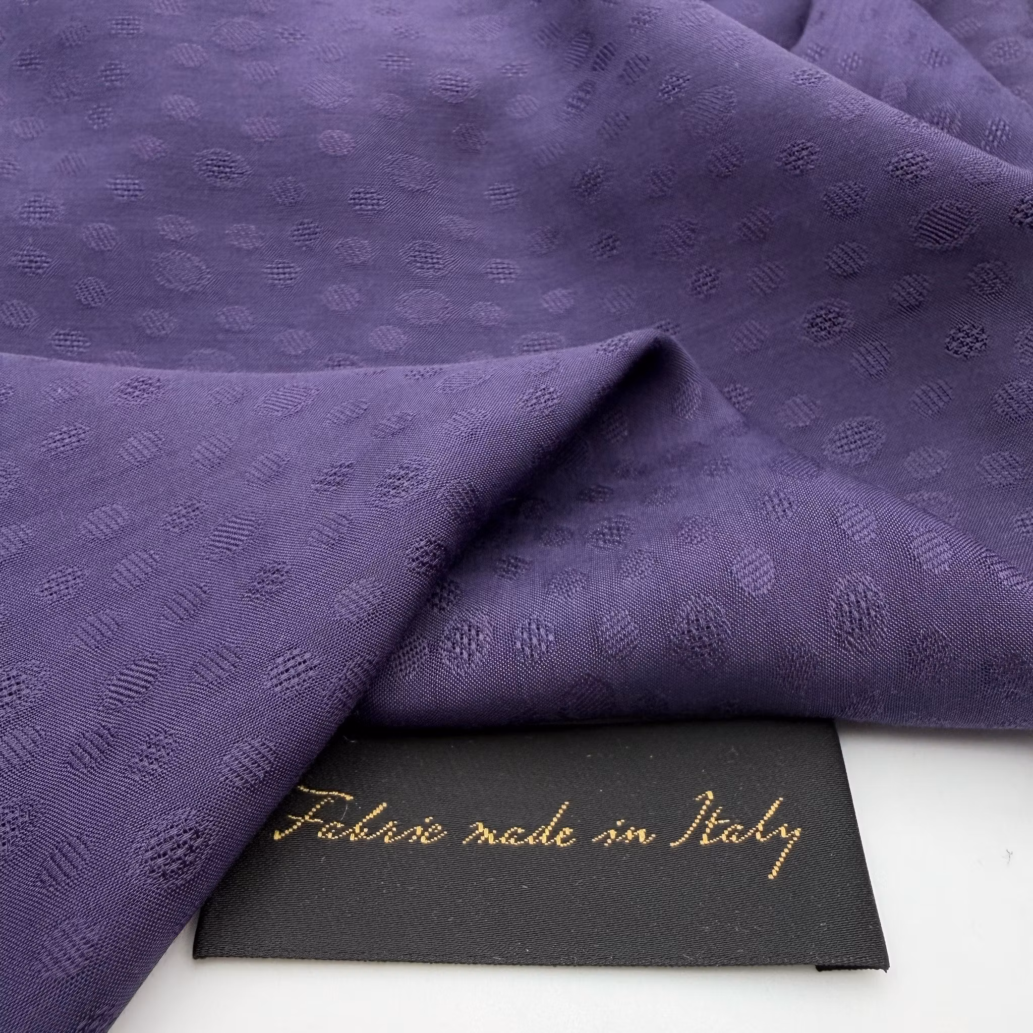 Material: 100% viskos, tunnare, jaquardvävt prickmönster, lagom blankt, fint fall.
