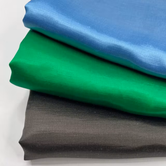 Material: Viskos/lin, blank yta med lite linstruktur, ganska kraftigt, tungt fall, superhärlig kvalitet! Kallas för ”liquid metal”.