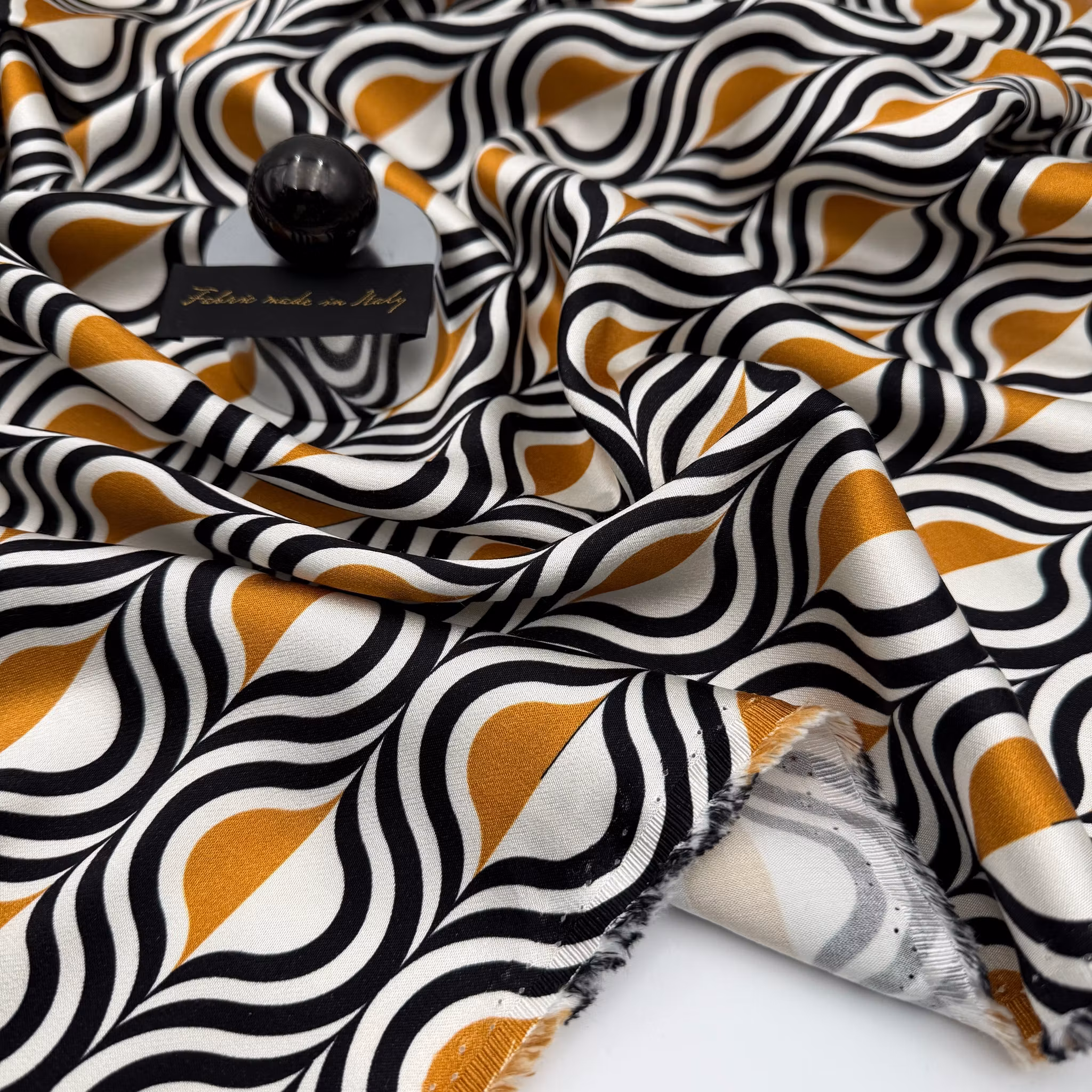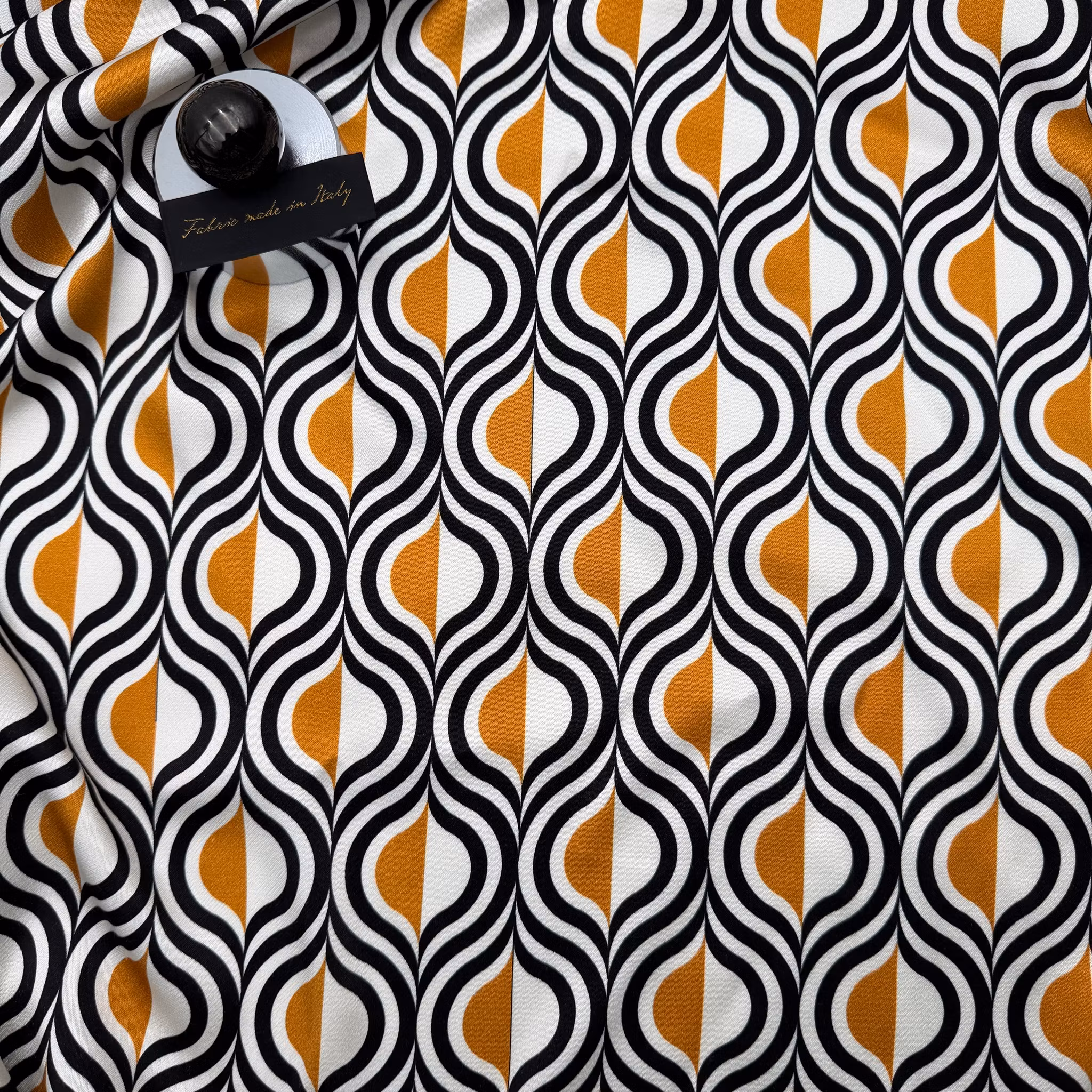 Färg: vit botten, mönster i svart och guld