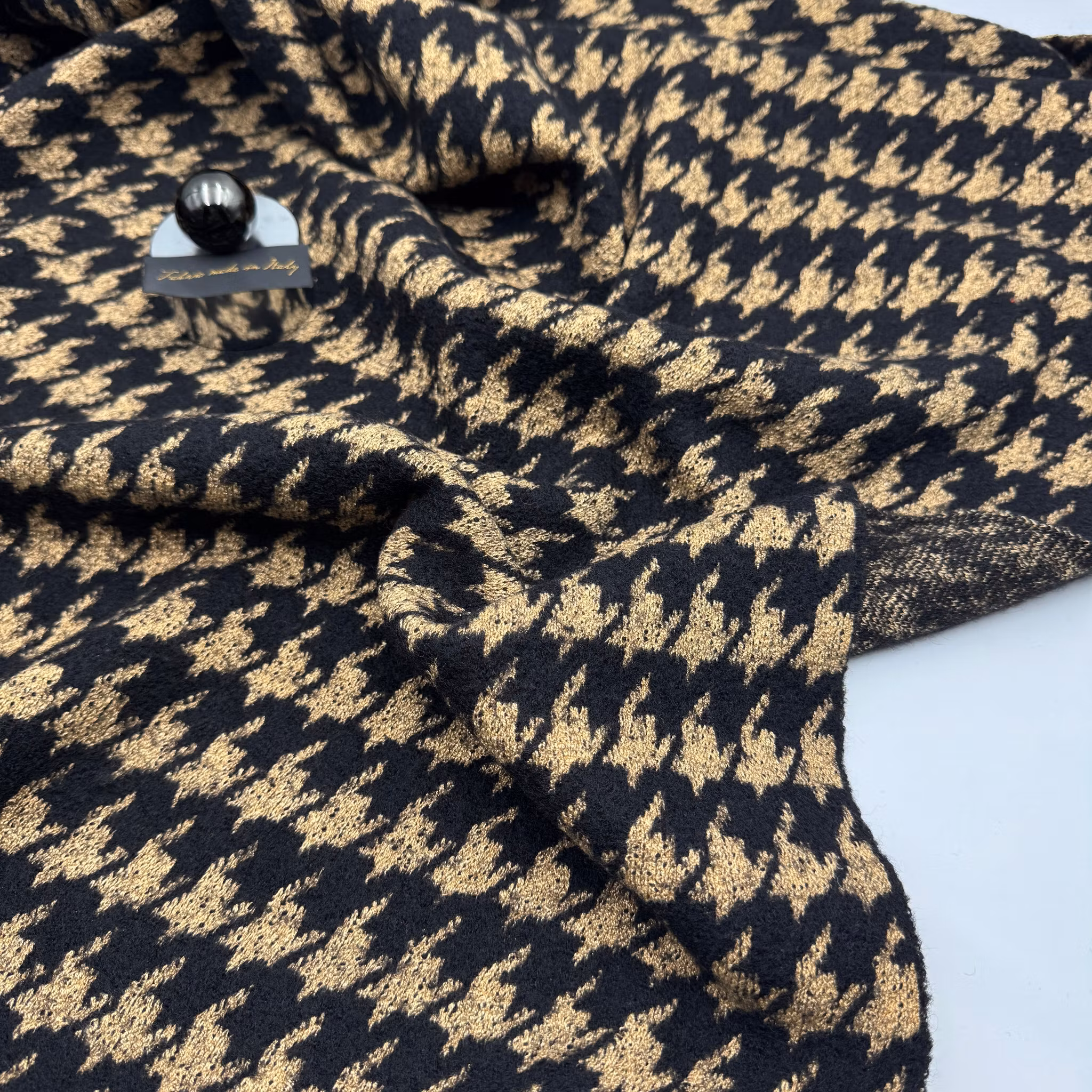 Material: 50% ull, 50% viskos, stickad, ganska tät, tänk motsvarande tjocklek som collegetyg.