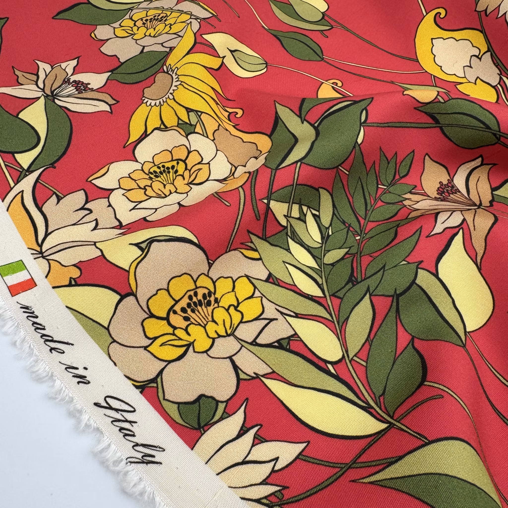 Tvättråd: Vi får inga tvättråd från våra italienska leverantörer, så vi rekommenderar att man provtvättar en liten bit först.