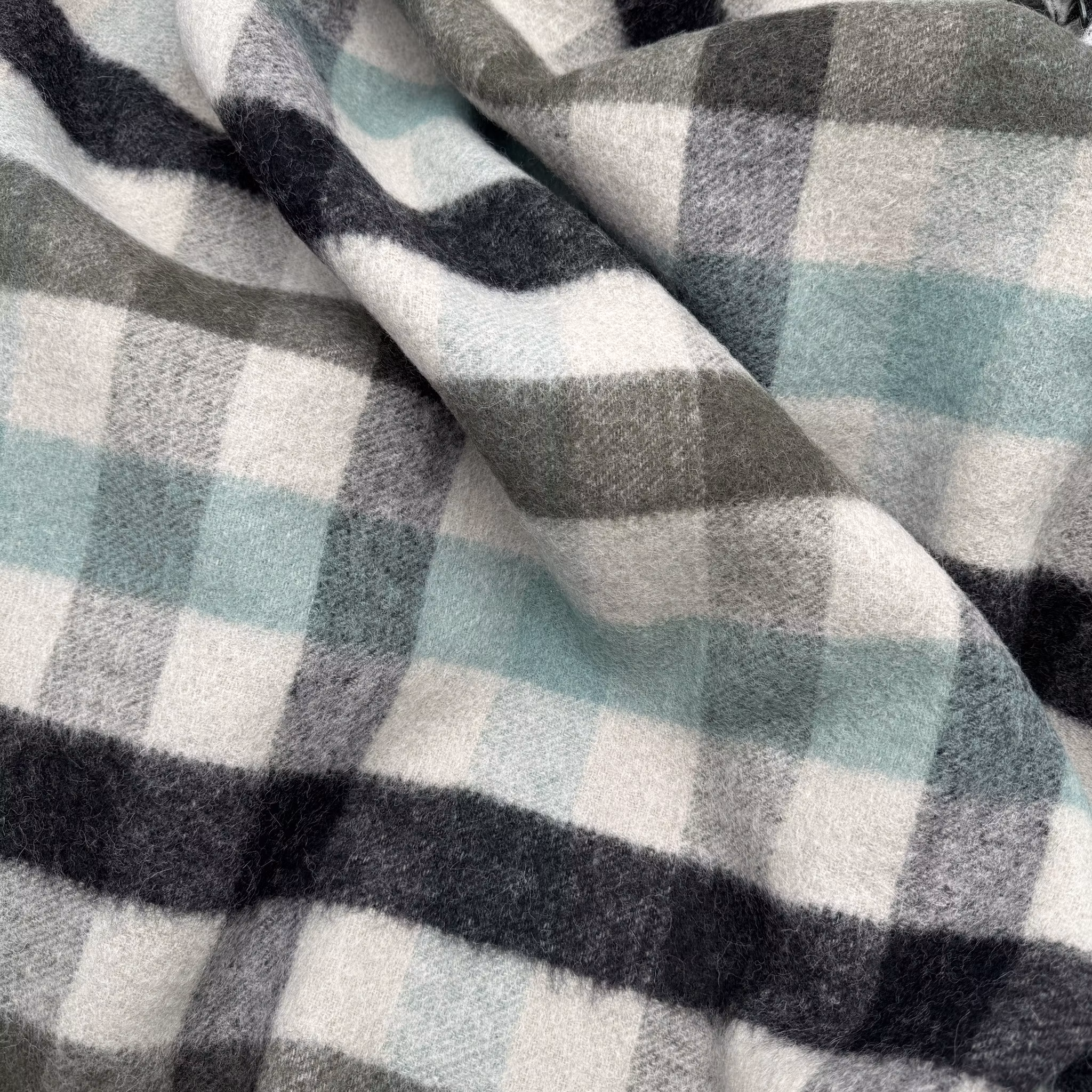 Material: 100% Ull, mjuk och fluffig, lätt men varm och gosig. Rutorna är ca 5 cm.