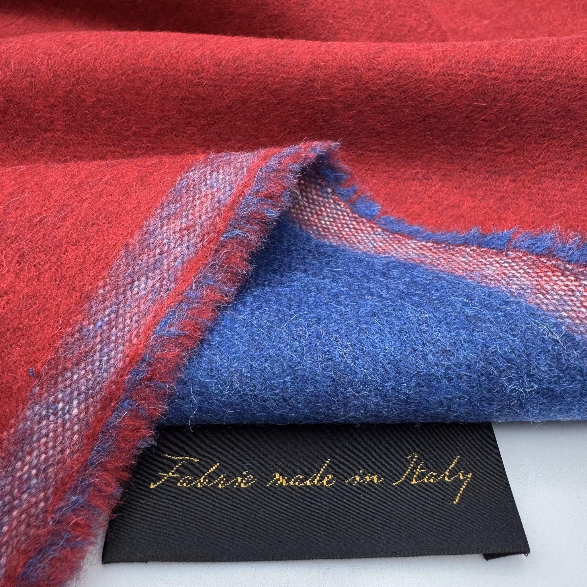 Färg: Röd (ganska kall nyans) på ena sidan, klarblå på andra