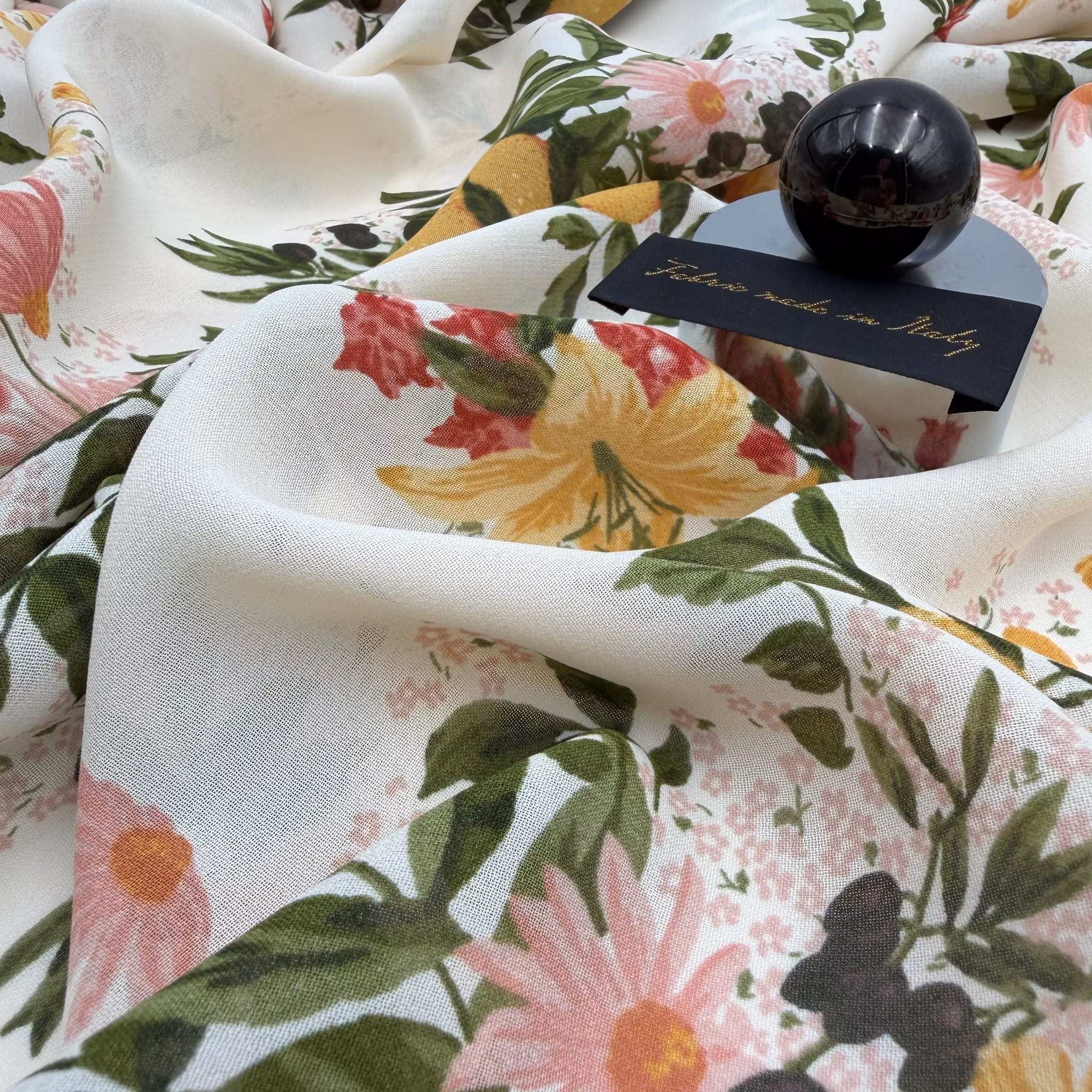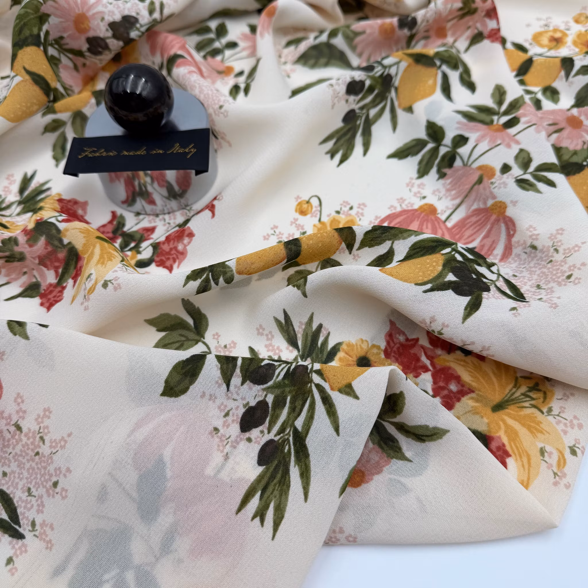 Färg: gräddvit botten, buketter och citroner i milda rosa, gula och gröna toner.