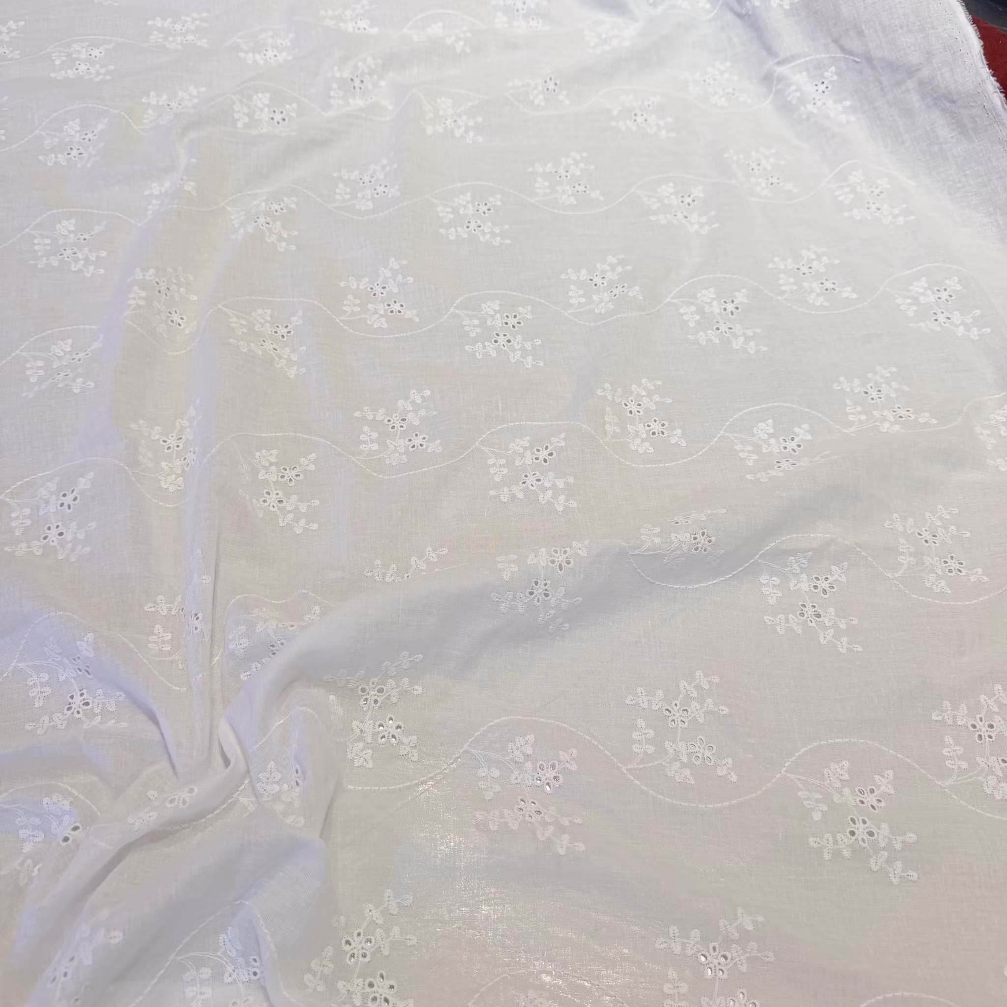 Material: 100% bomull, tunnare kvalitet, s.k. batist med broderat mönster.