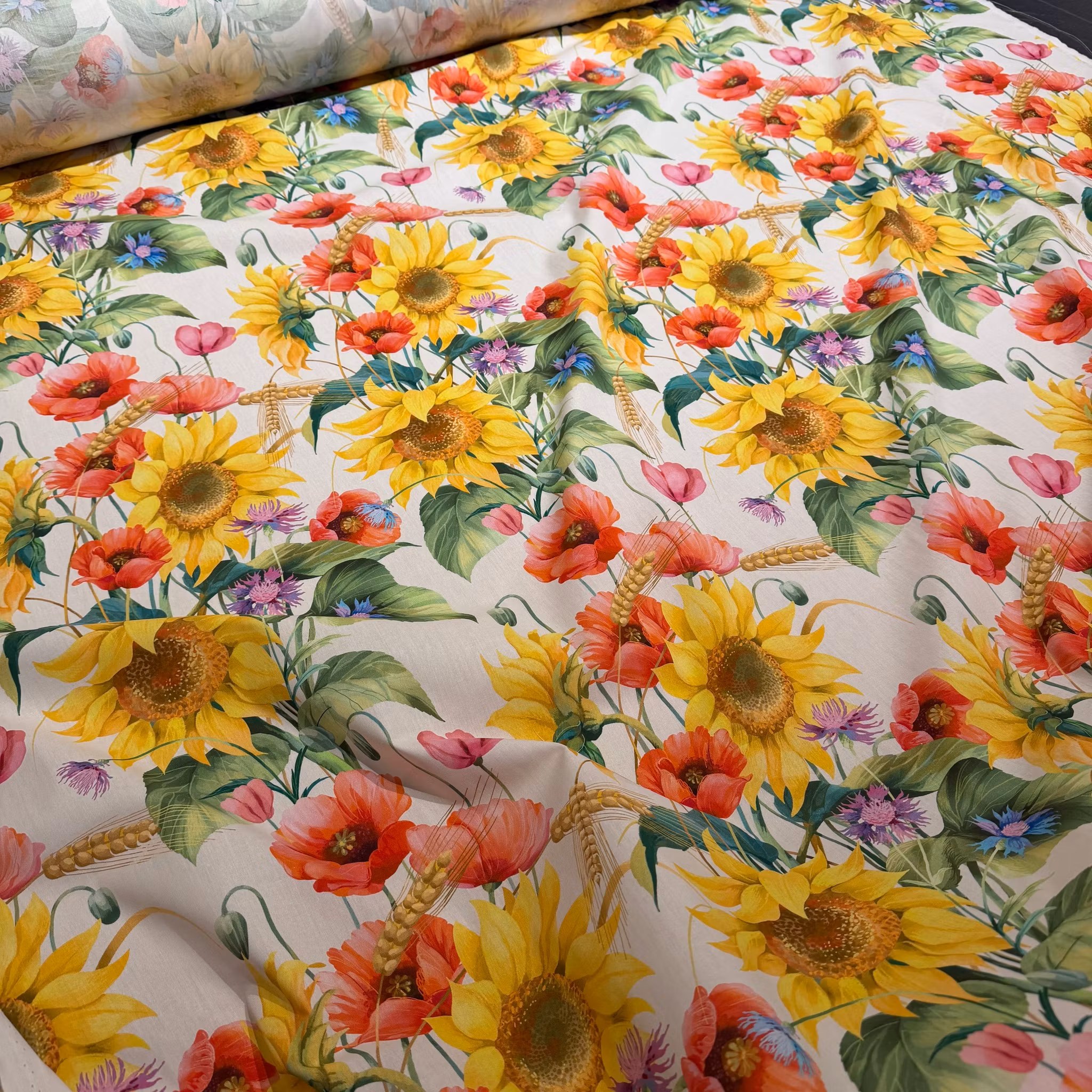 Färg: vit botten, mönster i rött och gult, grönt och blått.
