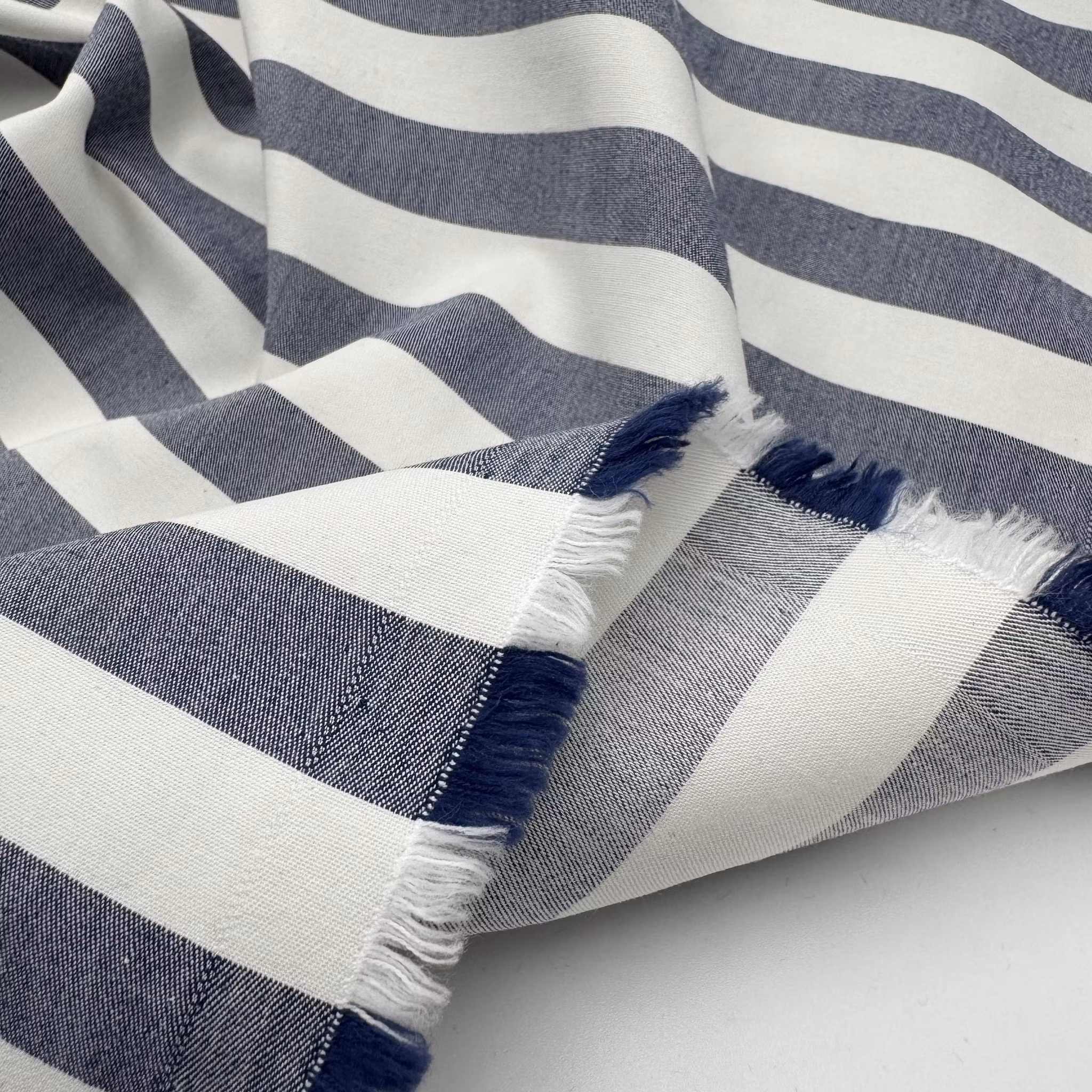Färg: jeansblå och vita ränder på bredden.