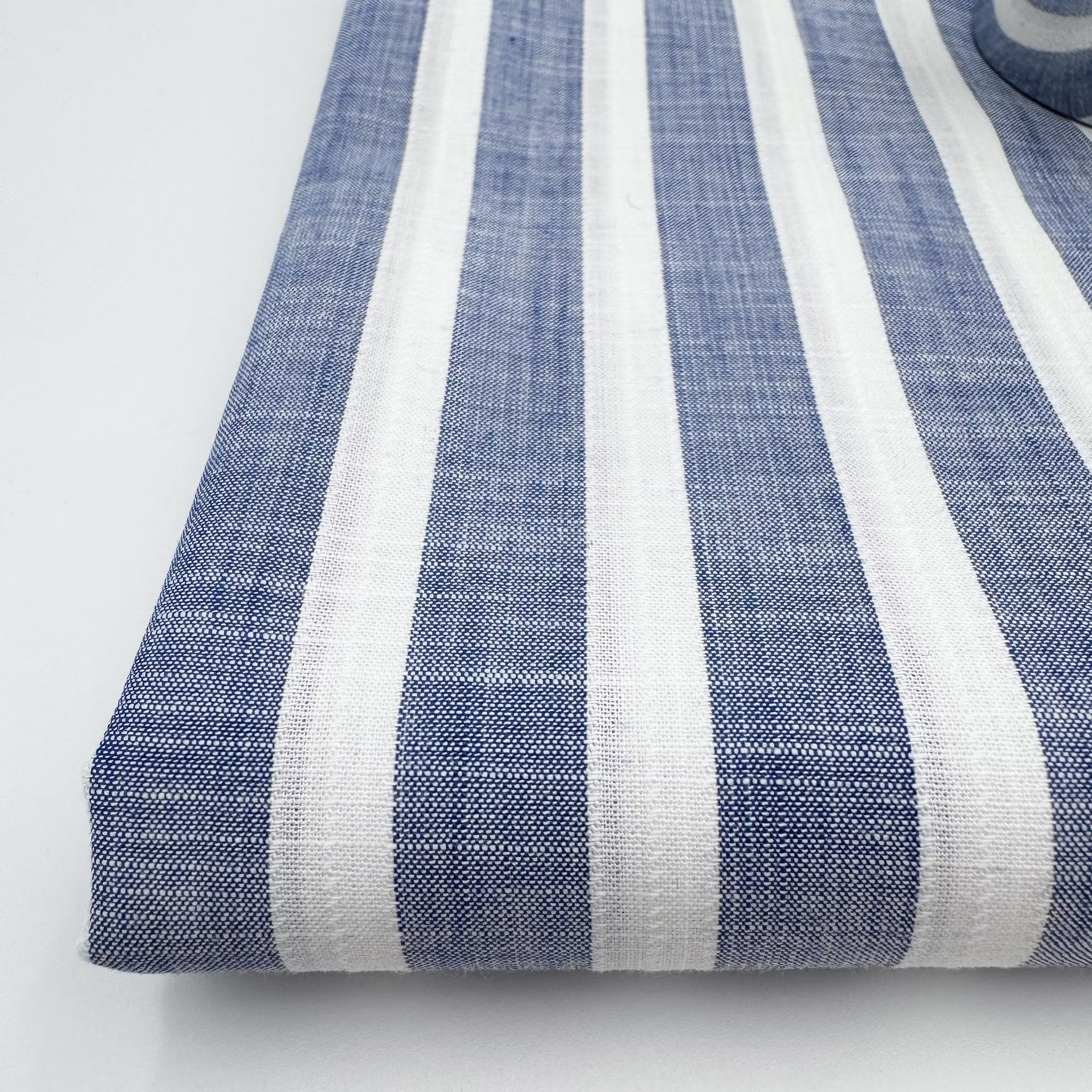 Färg: Jeansblå chambray med vita ränder på längden. Ränderna har i sin tur lite strukturränder i sig. Effektfullt men diskret.