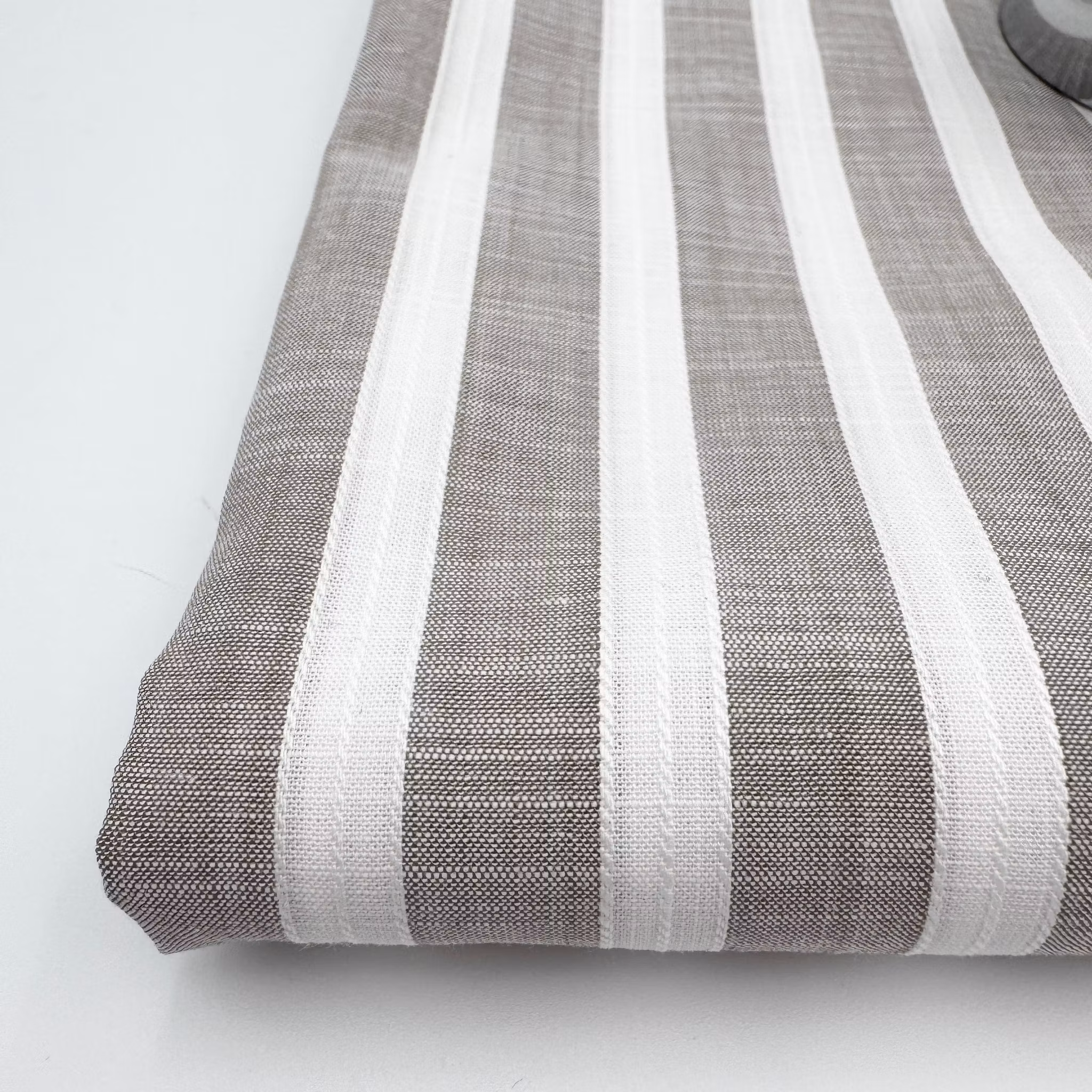 Färg: Sandbeige chambray med vita ränder på längden. Ränderna har i sin tur lite strukturränder i sig. Effektfullt men diskret.