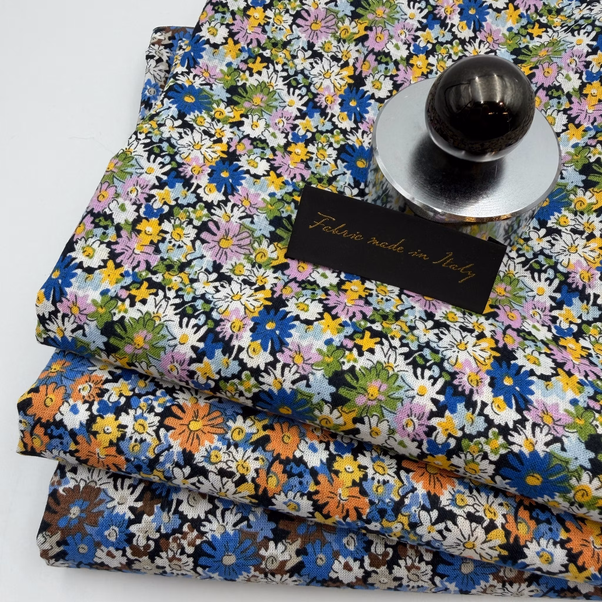 Färg: svart botten, blommor i gult, grönt, blått och rosa.