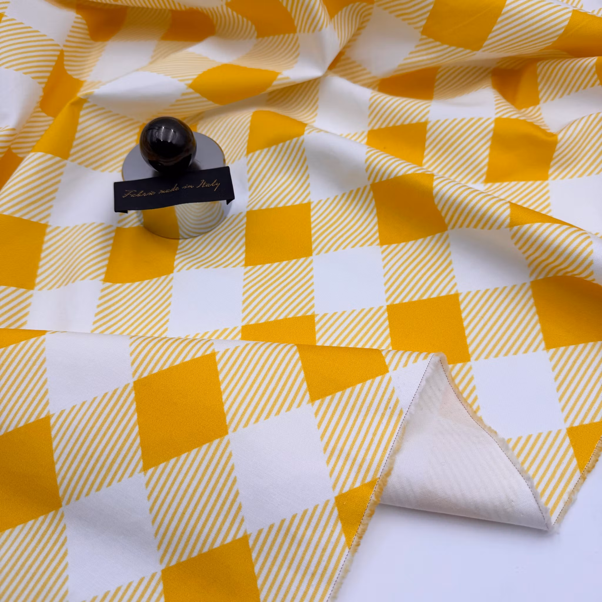Material: Bomull/elastan 98/2, smidigt chinostyg/twill eller kraftigare skjorttyg. Tryckta rutor på diagonalen.