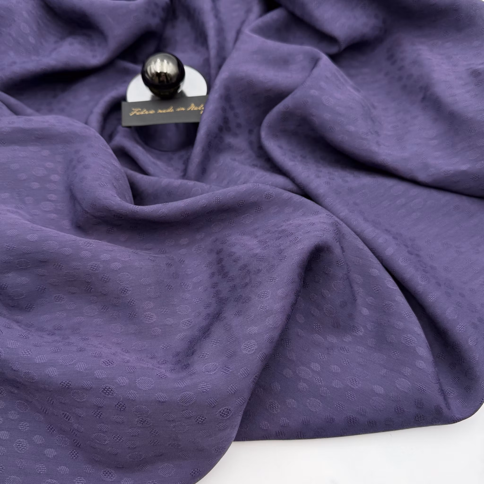 Material: 100% viskos, tunnare, jaquardvävt prickmönster, lagom blankt, fint fall.