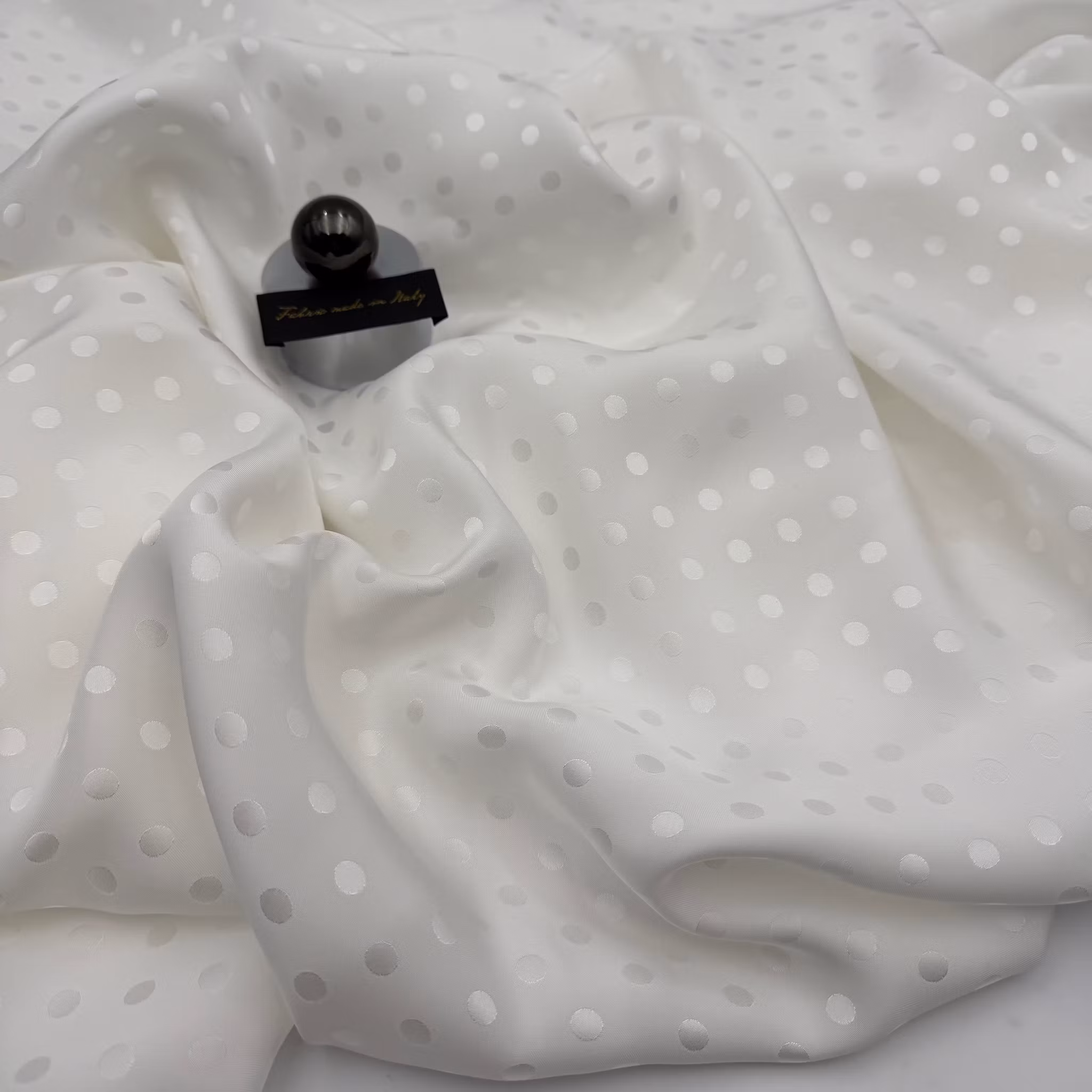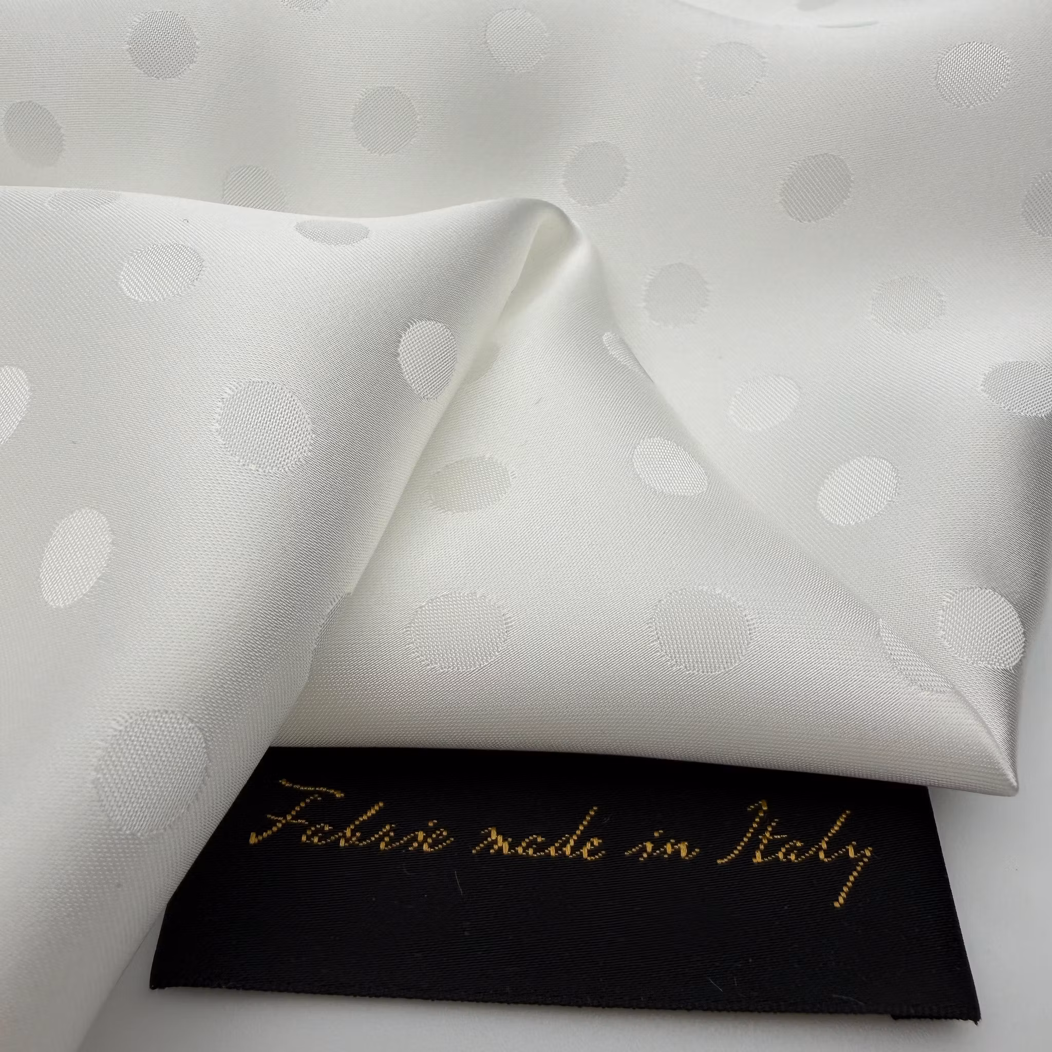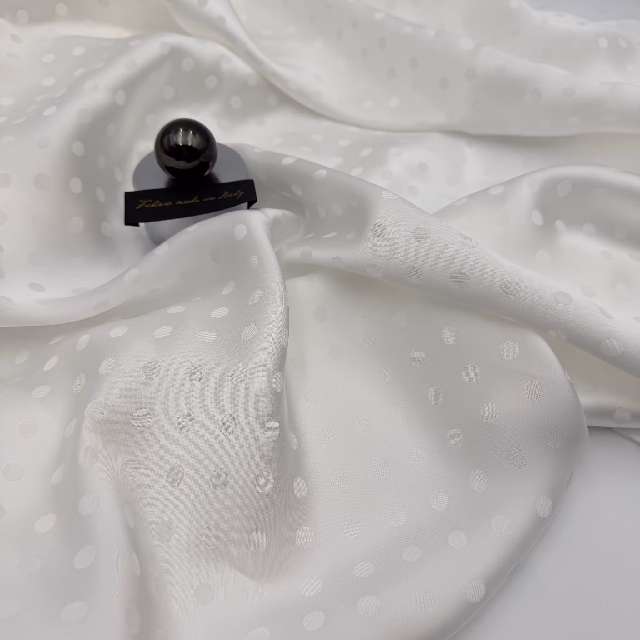 Material: 100% viskossatin med jaquardvävd prick, lagom blank, fint fall.