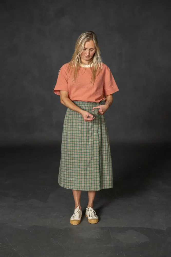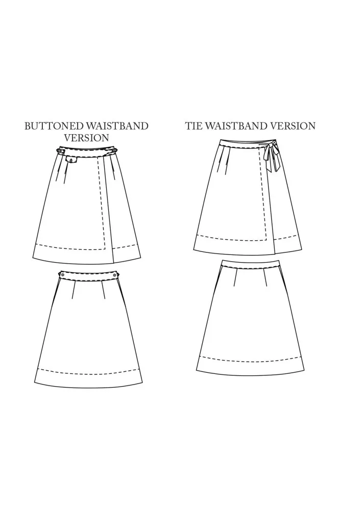 För att bestiga berg eller promenera i stan – denna vandringskjol finns i två varianter. En med hög midja, ficka och knäppning som passar perfekt för kraftigare tyger, samt en med enkel knytning som lämpar sig för mjukare linnekvaliteter.
