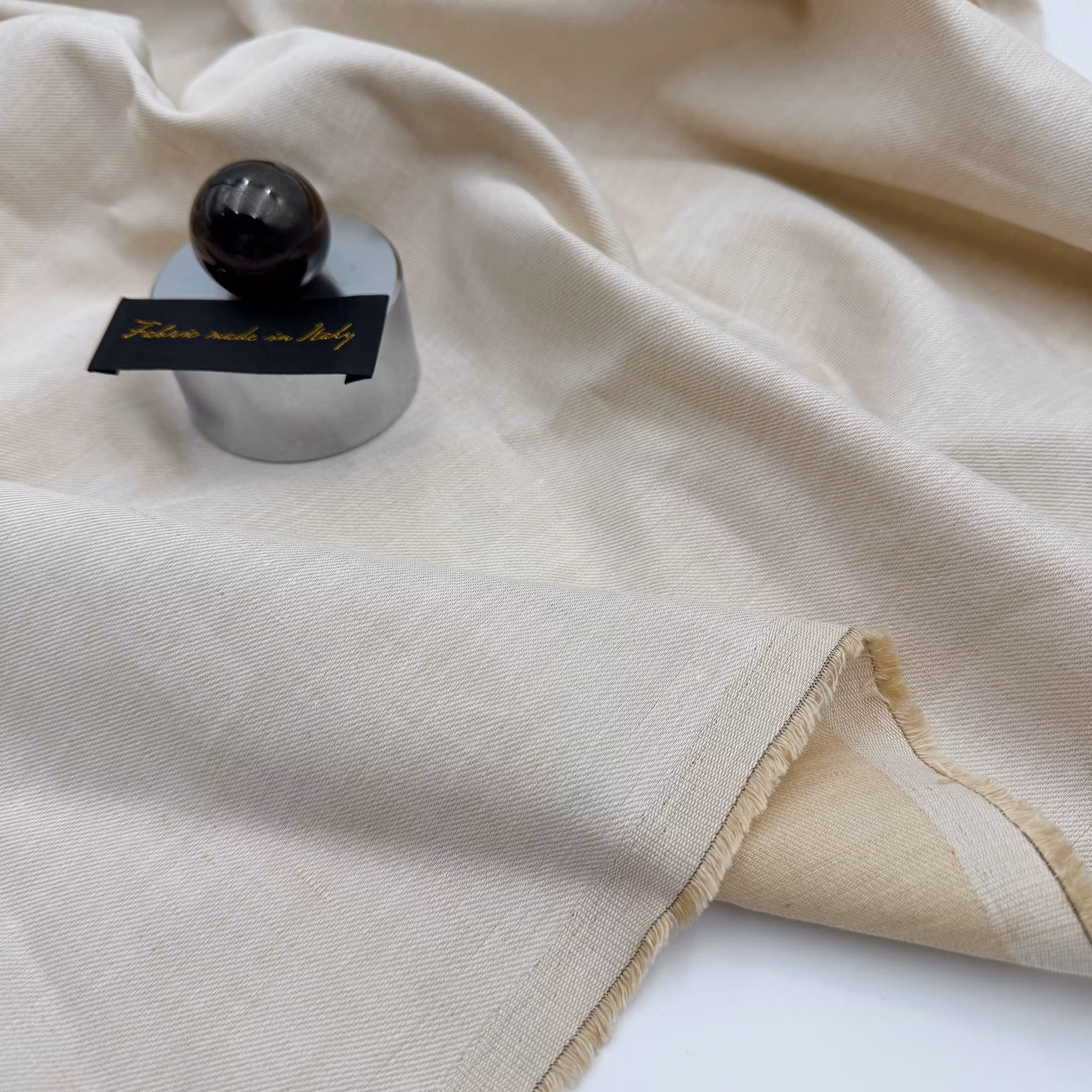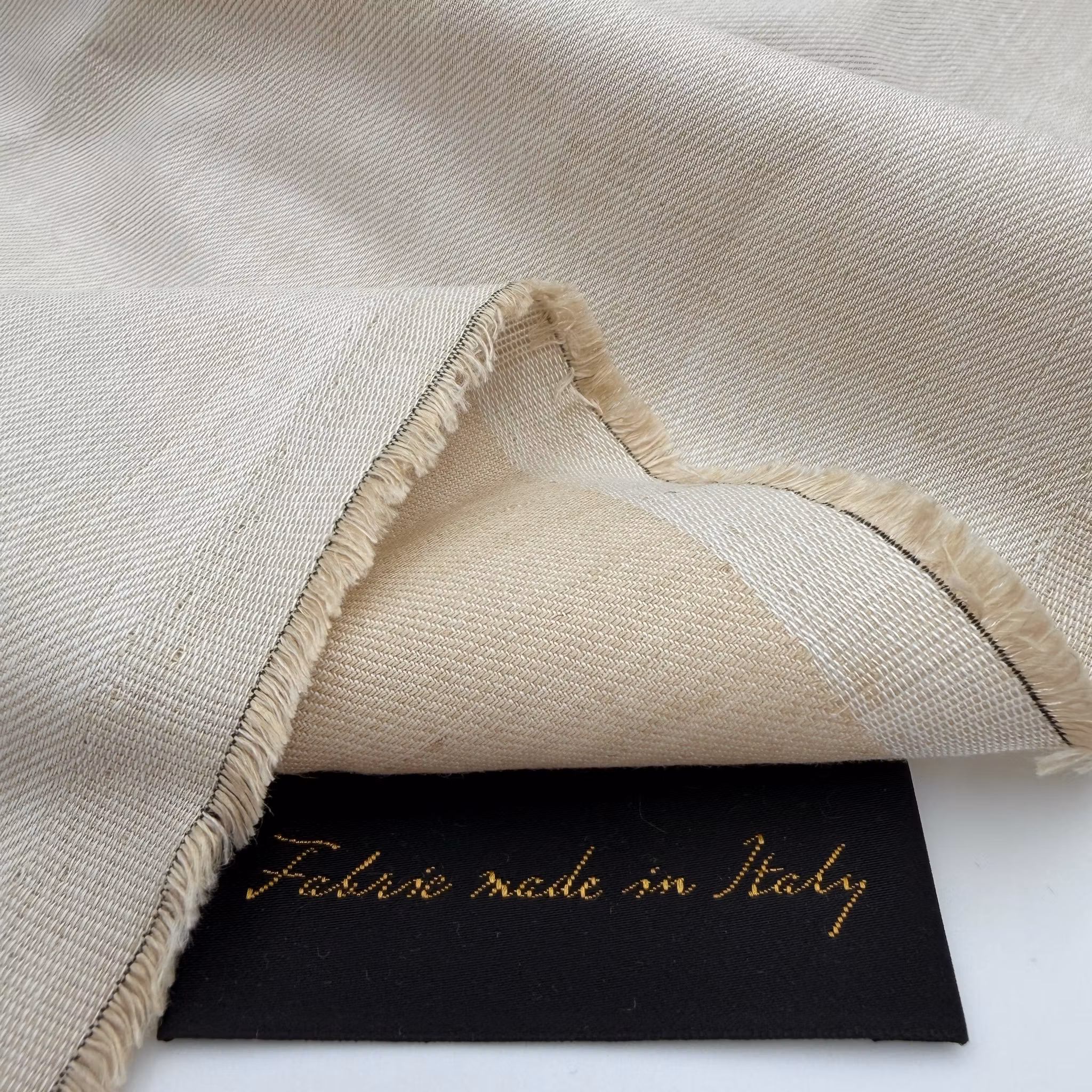 Material: 60% lin och 40% bomull. Tät och fin kvalitet, tänk kraftigare skjorttyg/tätare linne. Fin lyster, lite melerat.