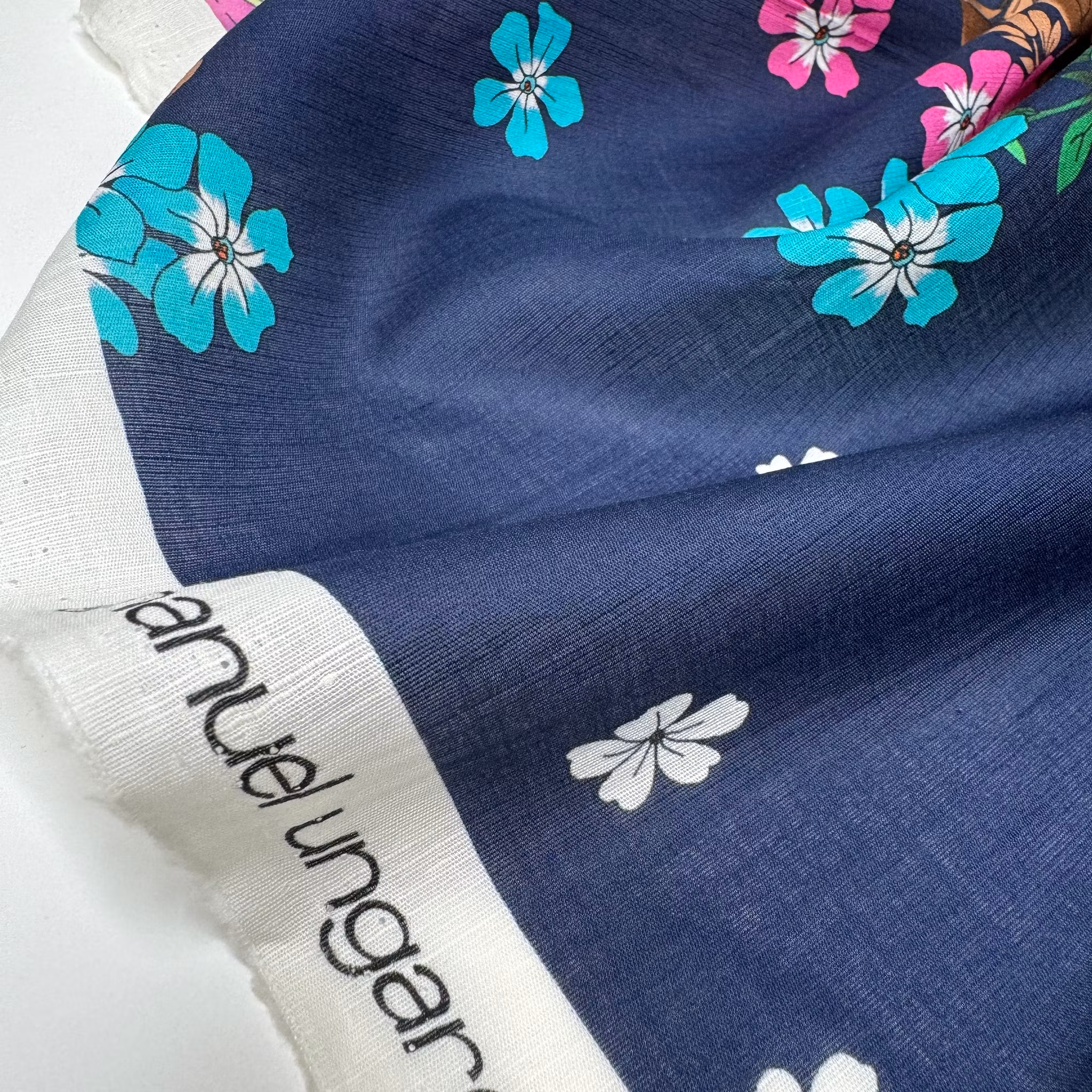 Färg: marin botten med blommor i klara färger