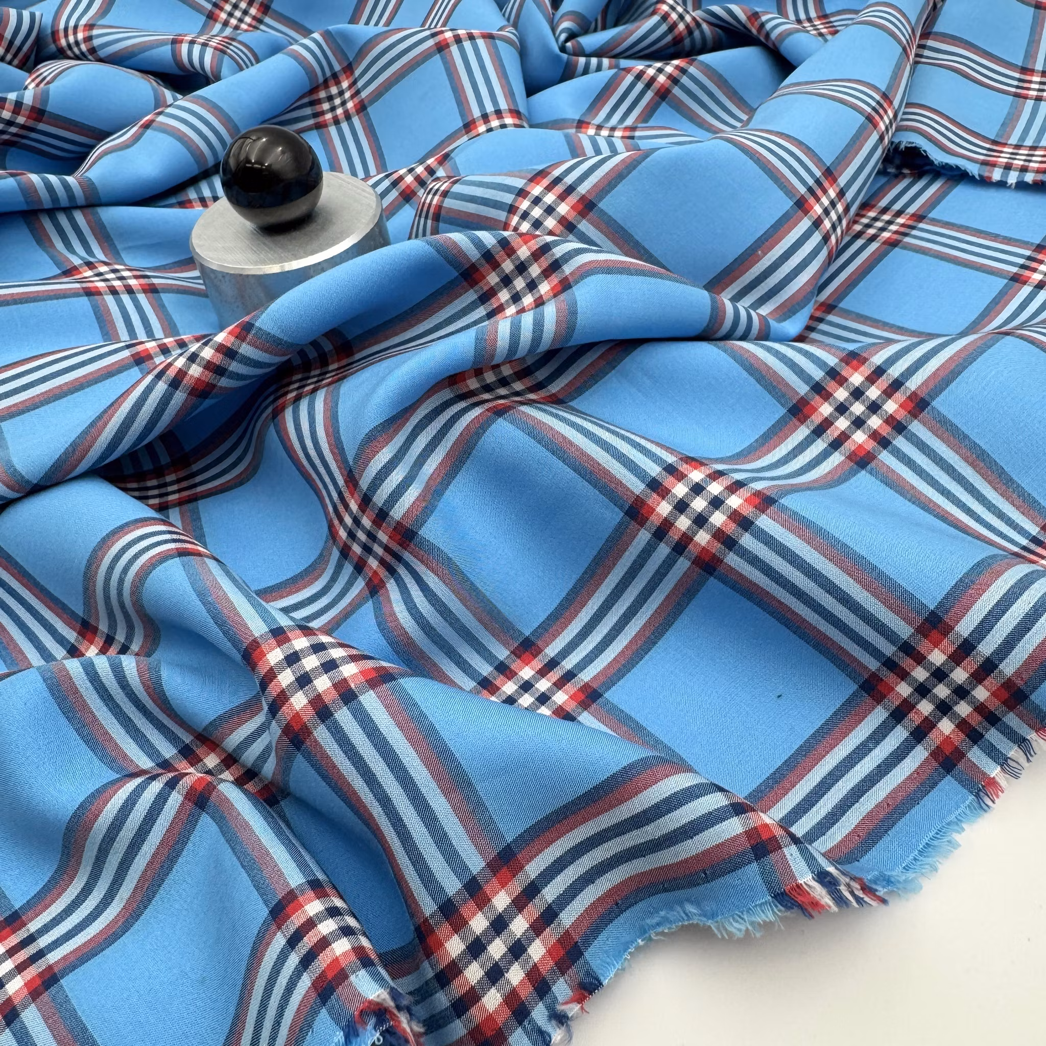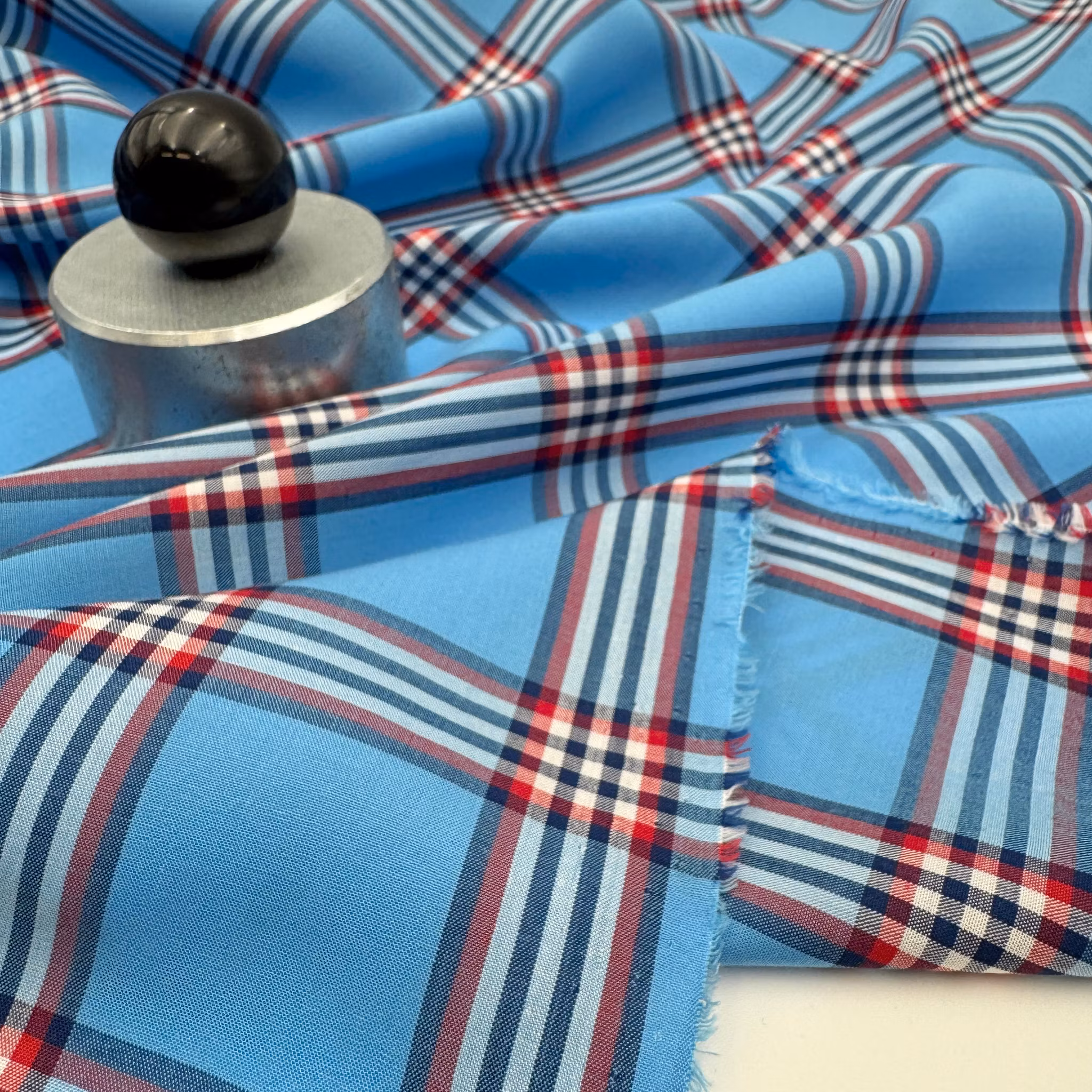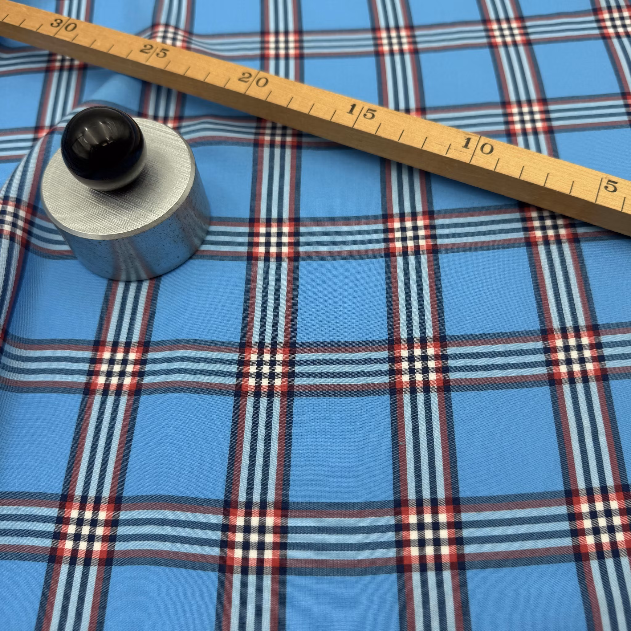 Färg: Himmelsblå botten med rutor i rött, vitt och marinblått.